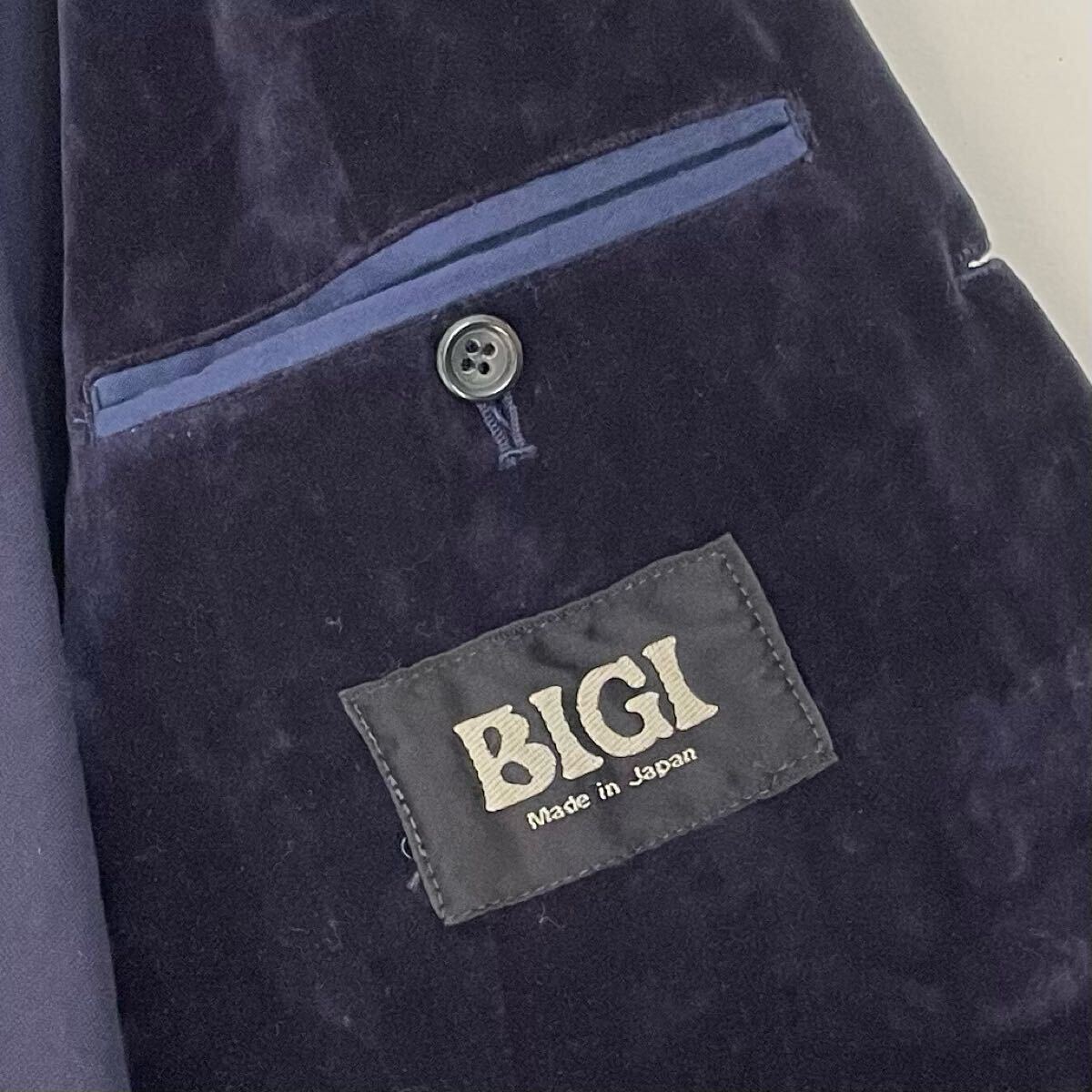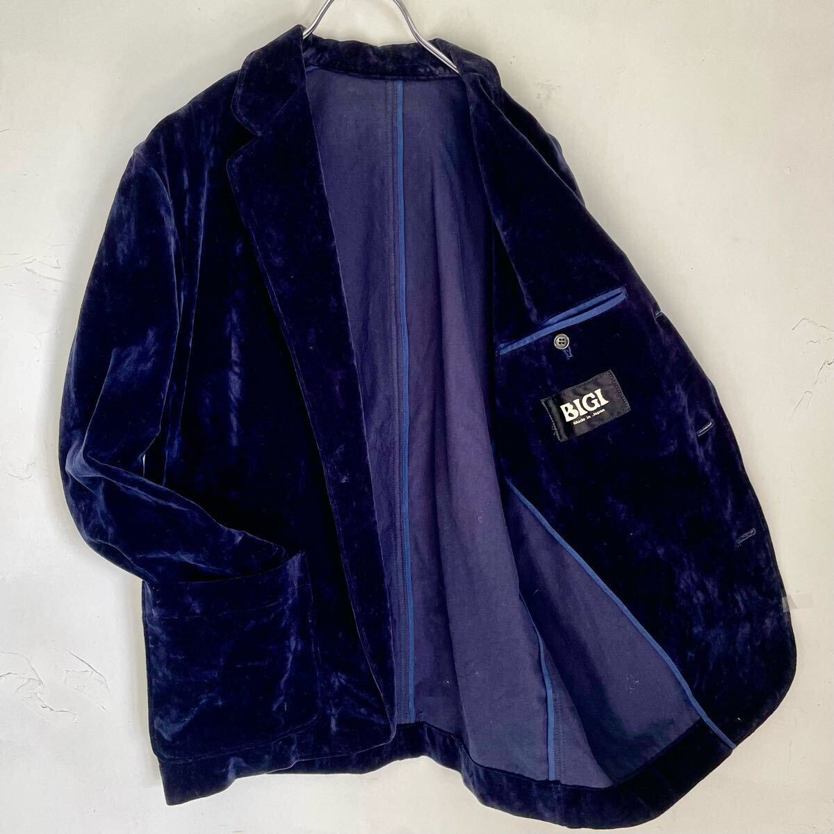 ヴィンテージ BIGO ベロア生地 テーラードジャケット 5 ワークジャケッ ブレザー 紺色 ネイビー Mサイズ 日本製 メンズレディース 国産古着になります。