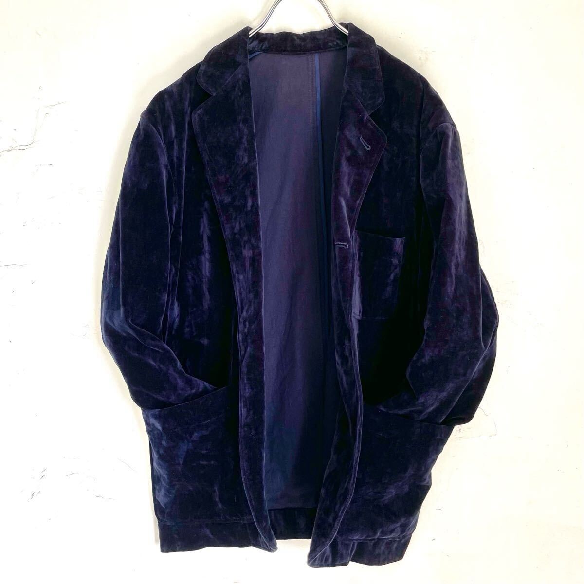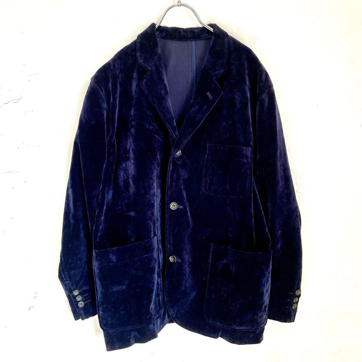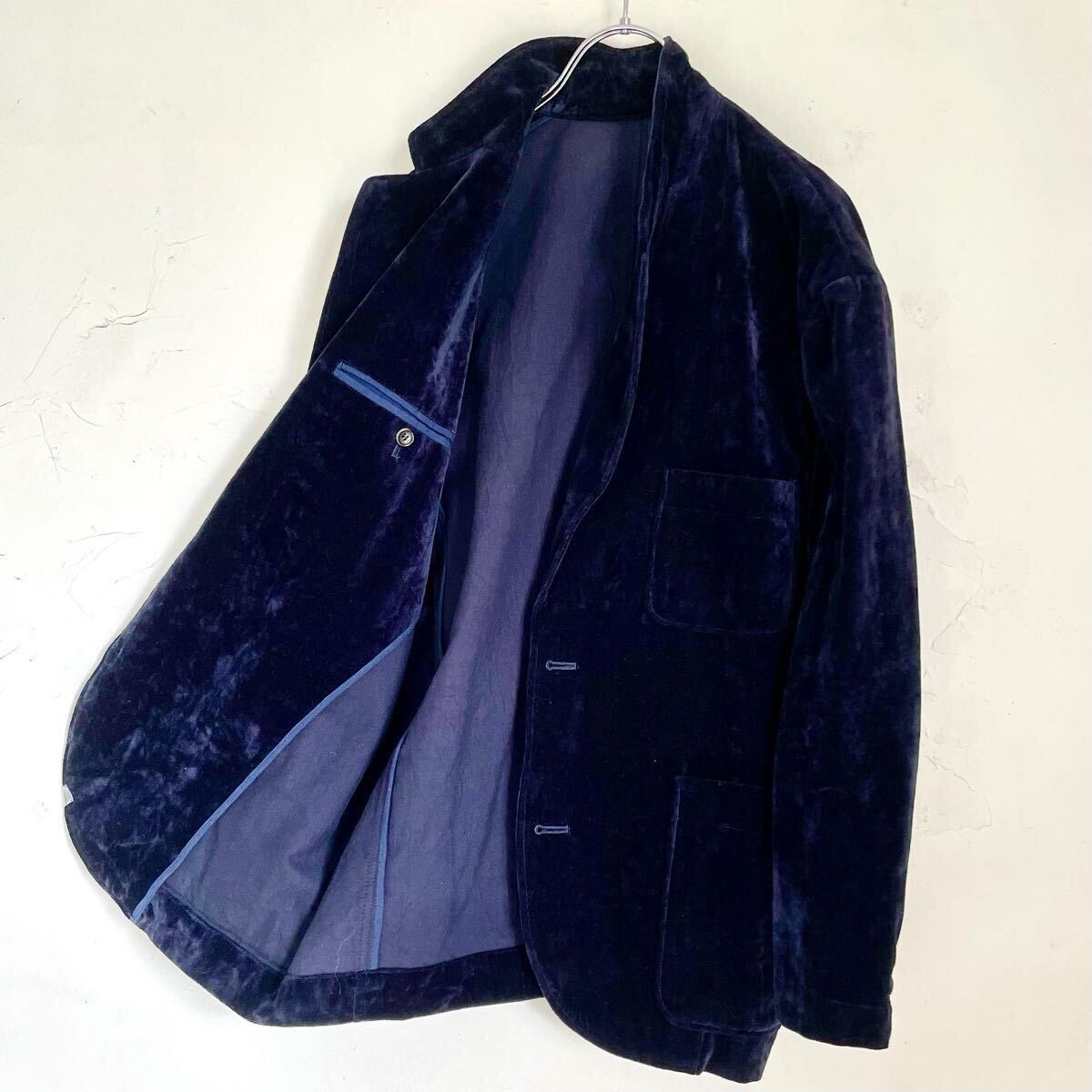 コットン100% ベロア生地アンコンジャケットブレザーになります。紺色 ネイビー。メンズMサイズ。肩のおちるサイズ感フォルムの良い品です。男女問わずざっくりと着て頂けるかと思います。国産 日本製。
