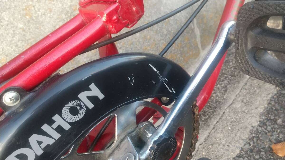 フレームに多少のキズあります。部品に多少のキズ、サビあります。サドルに小さなヤブレあります。タイヤサイズは16インチです。