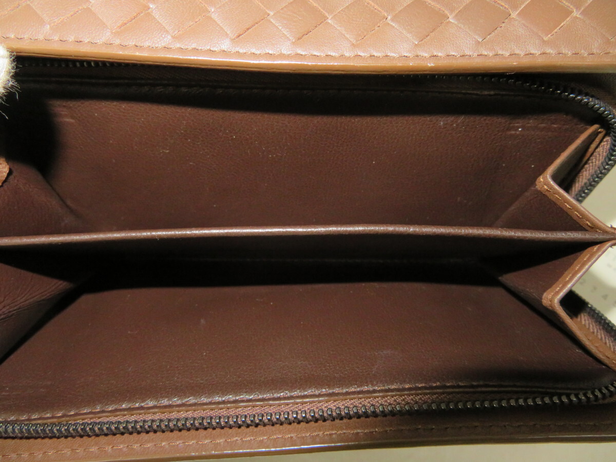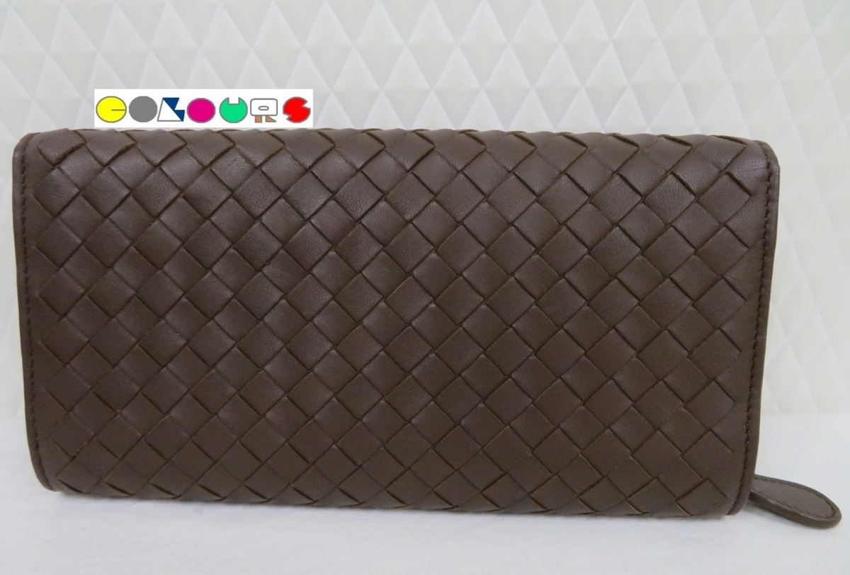 〔COLOURS〕 極美品■ラウンドファスナー小銭入れ■イントレチャート長財布■ラムスキン■薄ブラウン■BOTTEGA VENETA