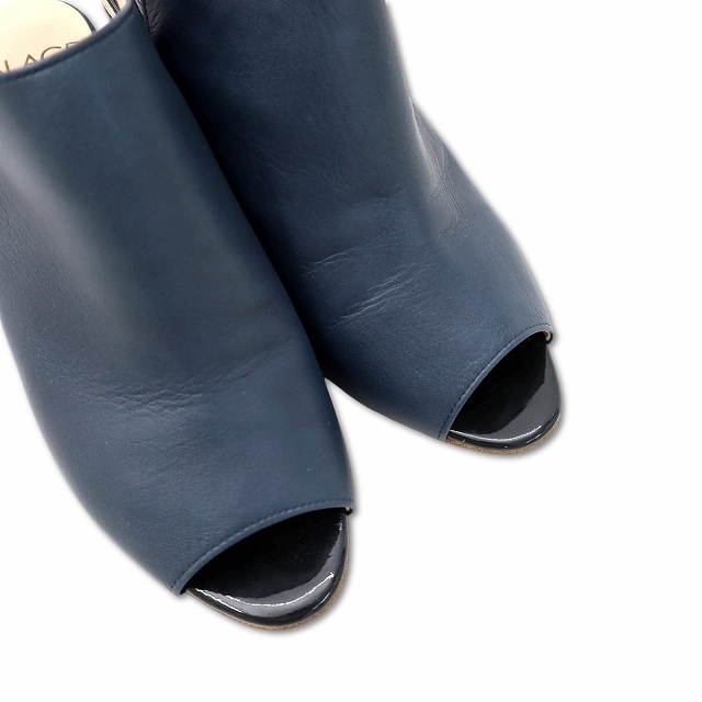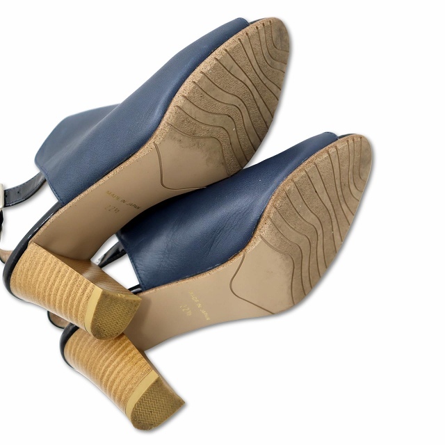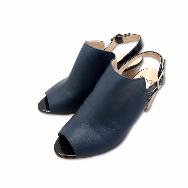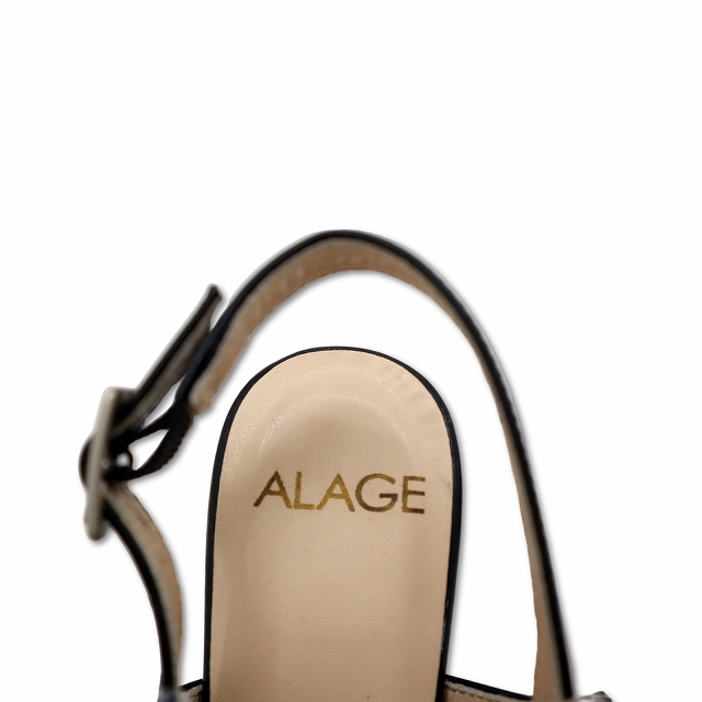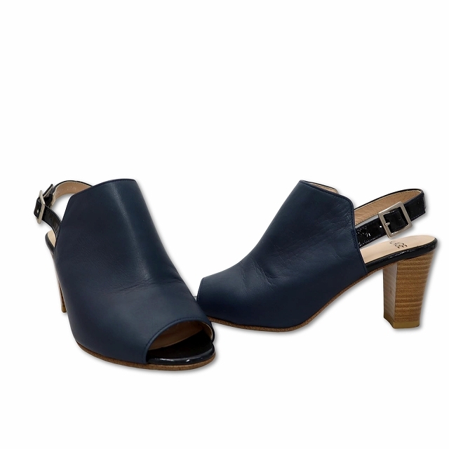 ALAGE レザー かかとストラップ オープントゥ サンダル 22 1/2 ネイビー レディース