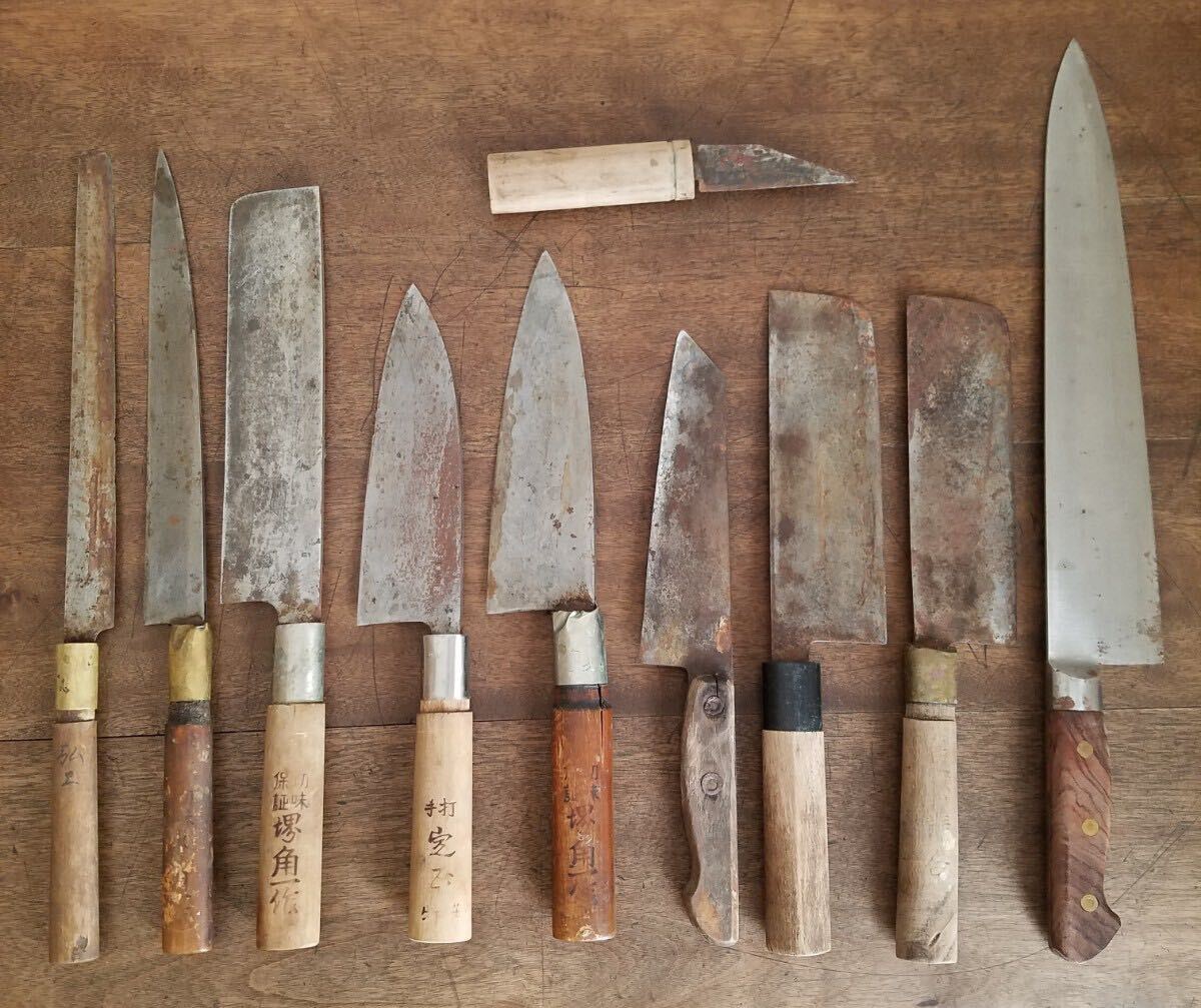 蔵出 当時物 包丁 10点 まとめて セット 在銘 銘入り 刻印 極上 堺 角一 元次 克弘 定正 手打 特撰 孫六 調理 料理 職人 刃物 アンティーク |