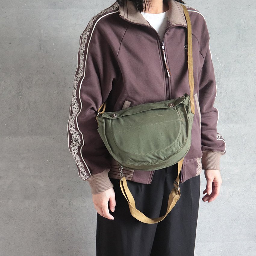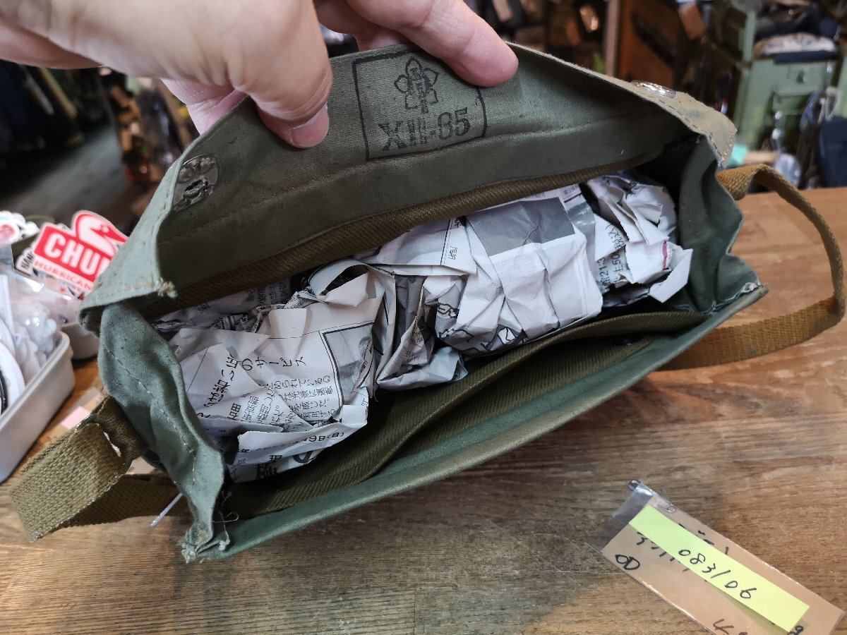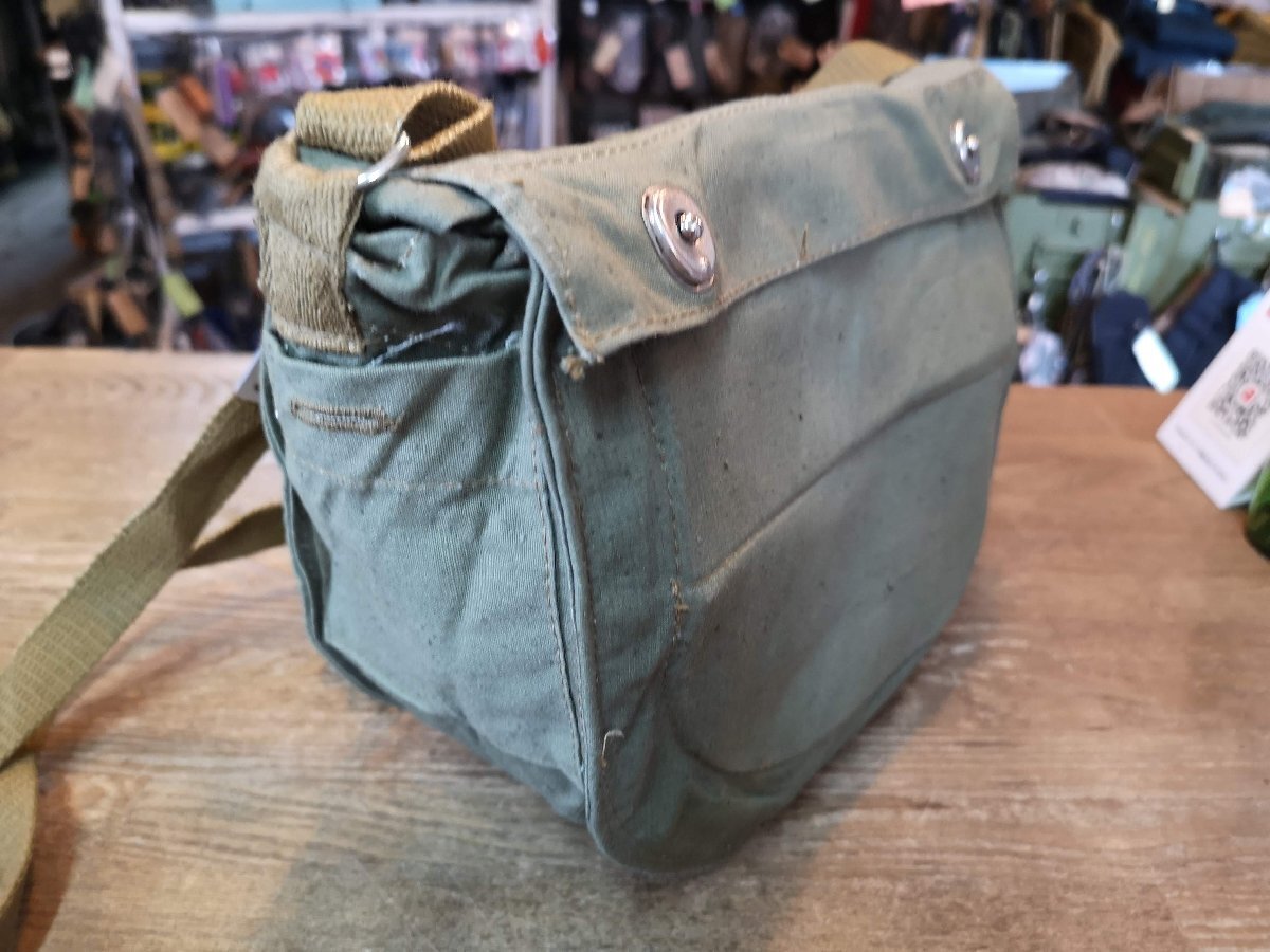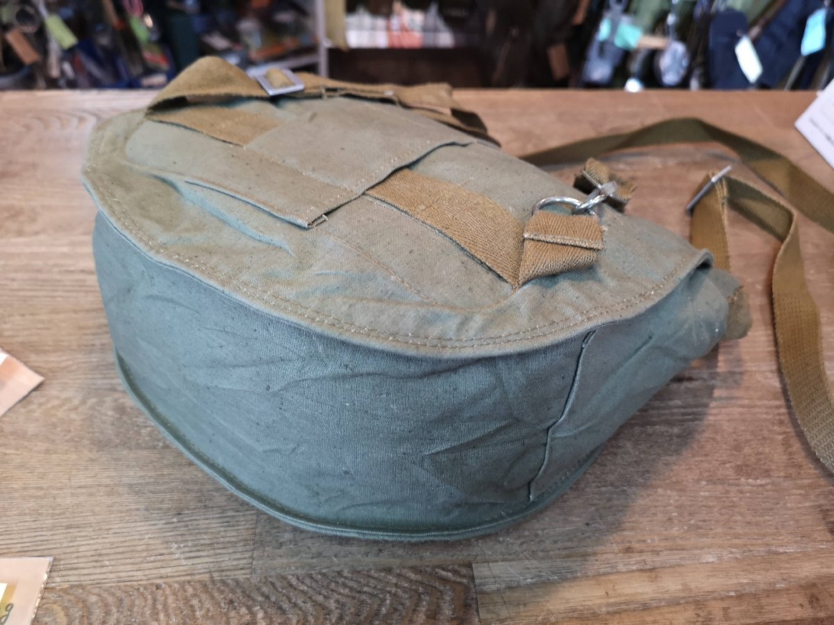 ソビエト軍にて70年代初頭に採用されたPBFガスマスクセットを収納するショルダーバッグです。 2つのドットボタンで開閉するコットン製のバッグで、生地は薄手ですが前面、背面の一部、前面背面の口のフチに薄い板が入っています。 内側は前面とマチに1つポケットがあります。 外側はマチに1つポケットがあります。 ショルダーストラップとウエストストラップは長さ調節可能です。 背面には幅約6cmのベルトループがあります。。写真の1.2.3.4枚目は流用です。 本体寸法 高さ約22cm、横約26cm、マチ約9cm ショルダーストラップ 約65~125cm 沖縄離島を除く全国500円でお送りいたします、落札価格にプラスでお願いいたします。キャンプ用品