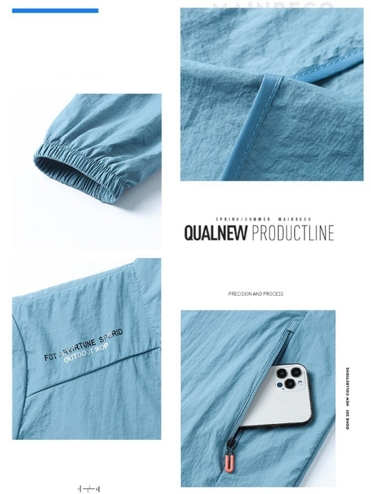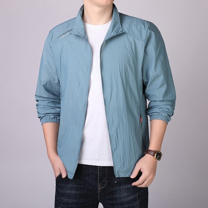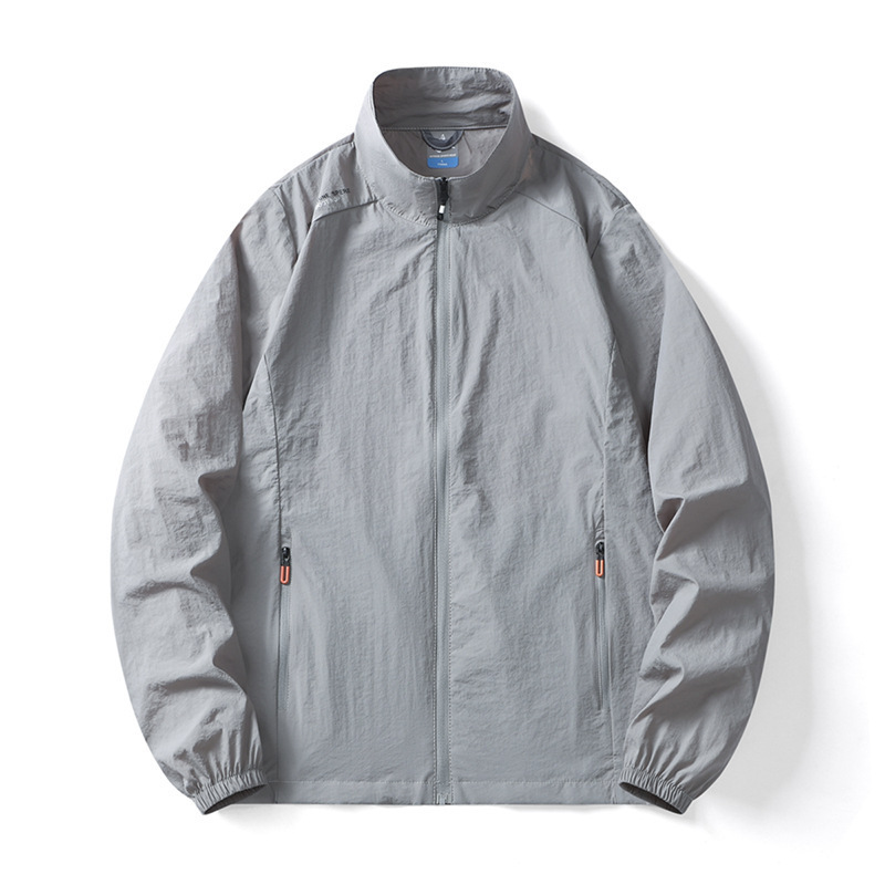 新作人気新品メンズ 立ち襟 ジャケット アウター UPF50+ UVカット 冷感 おしゃれ 無地 夏 通気 高級感 軽量 薄手 お色選択可ライトグレー
