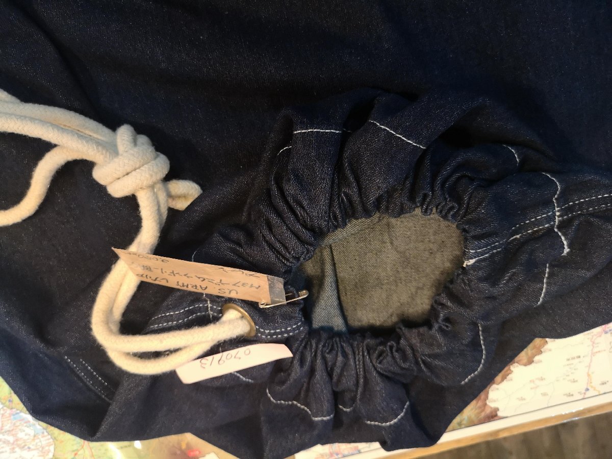 アメリカ軍により1937年に採用されたデニム製の兵営バックをサンプリング致しました。 兵士が身の回りの私物を持ち運ぶ為に使用されていたバッグだけあって、十分な大きさとデニムならではの耐久性が兵士の間では非常に人気でした。 サ ンプリングするにあたり、持ち運びの負担にならないようにデニムの雰囲気はそのままに生地の柔らかさ、バッグ自体の重量を軽くして普段使いしやすいように仕上げました。 サイズ:H約50cm × D約40cm ●素材:コットン 沖縄離島を除く全国500円でお送りいたします、落札価格にプラスでお願いいたします。キャンプ用品