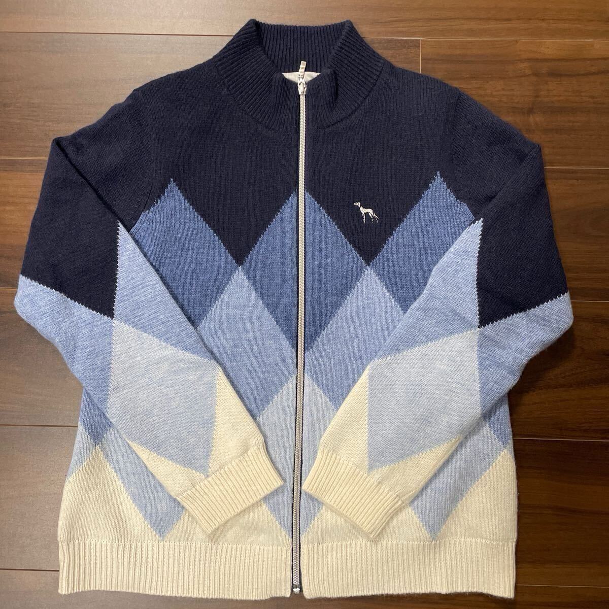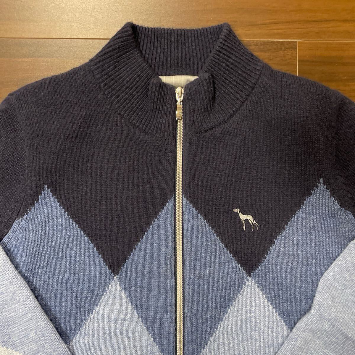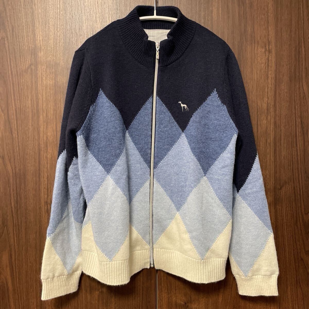 adabat アダバット ニット ジップアップ ブルゾン ゴルフウェア レディース サイズ40 ダイヤ柄 フルジップ カーディガン ネイビー系