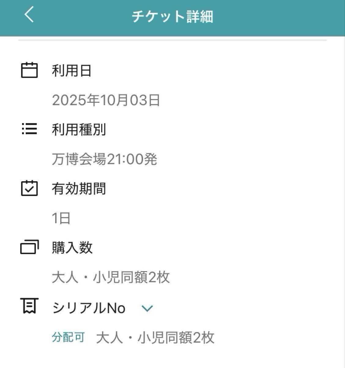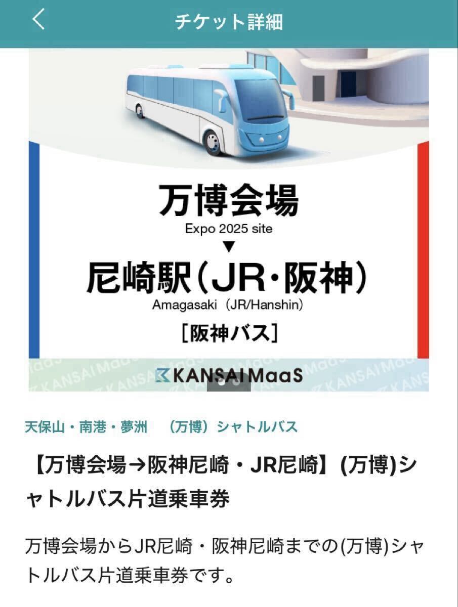 10/3 21時万博会場発→阪神尼崎・JR尼崎行きの万博シャトルバスチケット 2枚セットです。