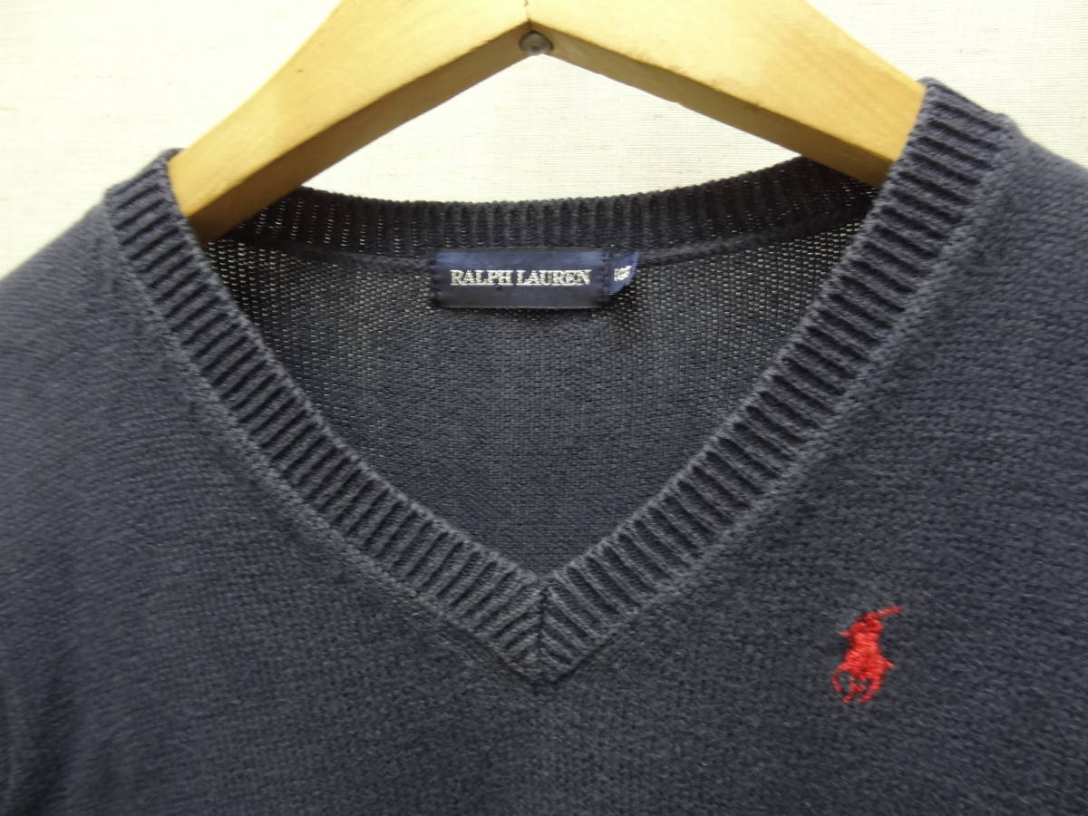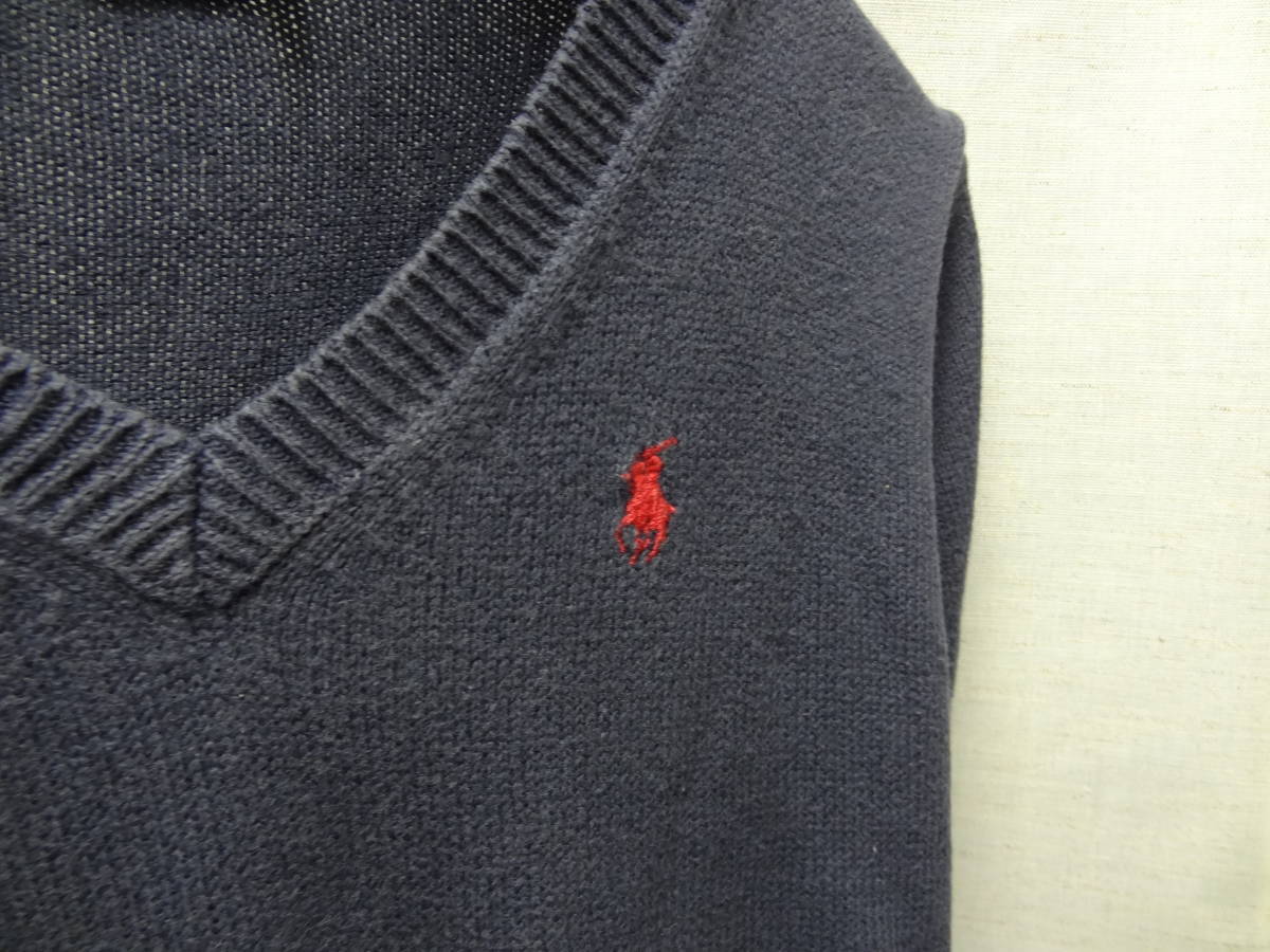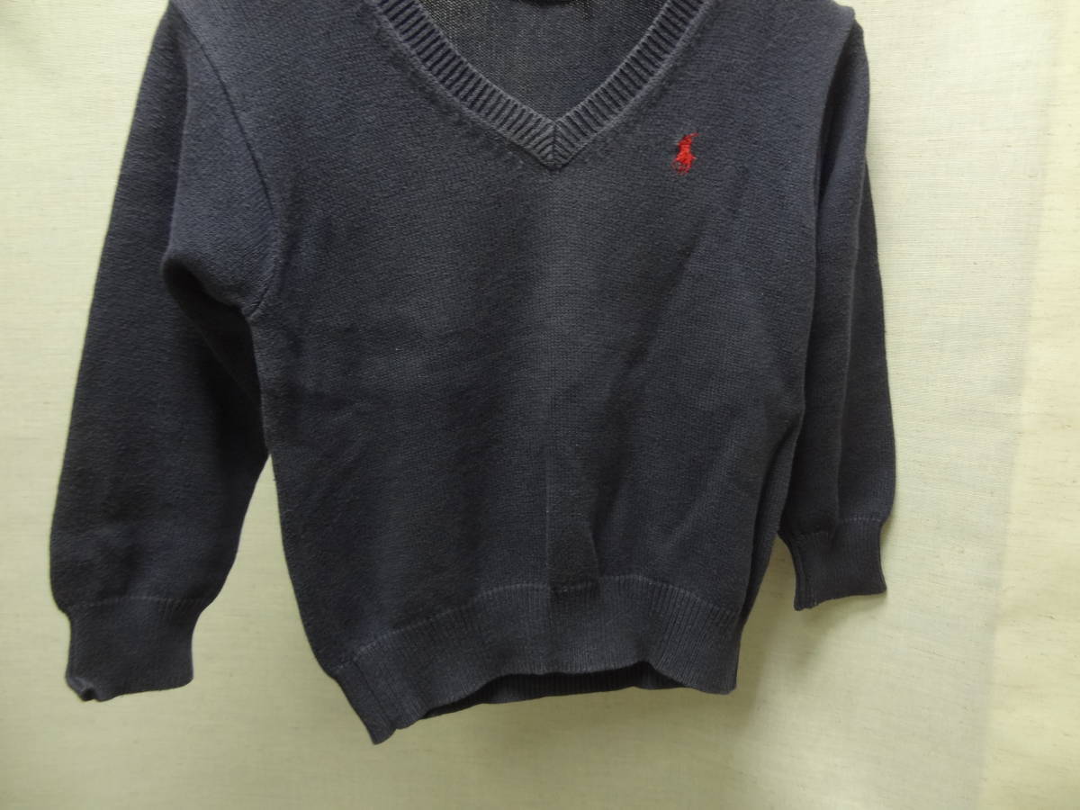 全国送料無料 正規品 ポロラルフローレンPOLO RALPH LAUREN子供服キッズ男&女の子ワンポイント赤色刺繍 綿100%紺色Vネックセーター 100