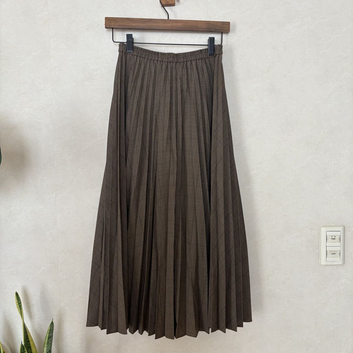 ユニクロ UNIQLO アコーディオンプリーツスカート ブラウン チェック サイズS