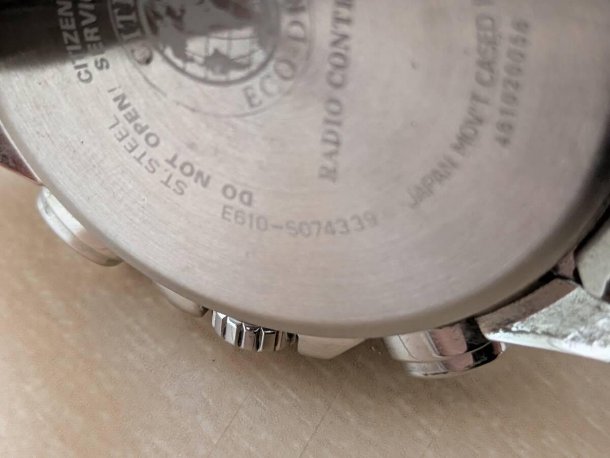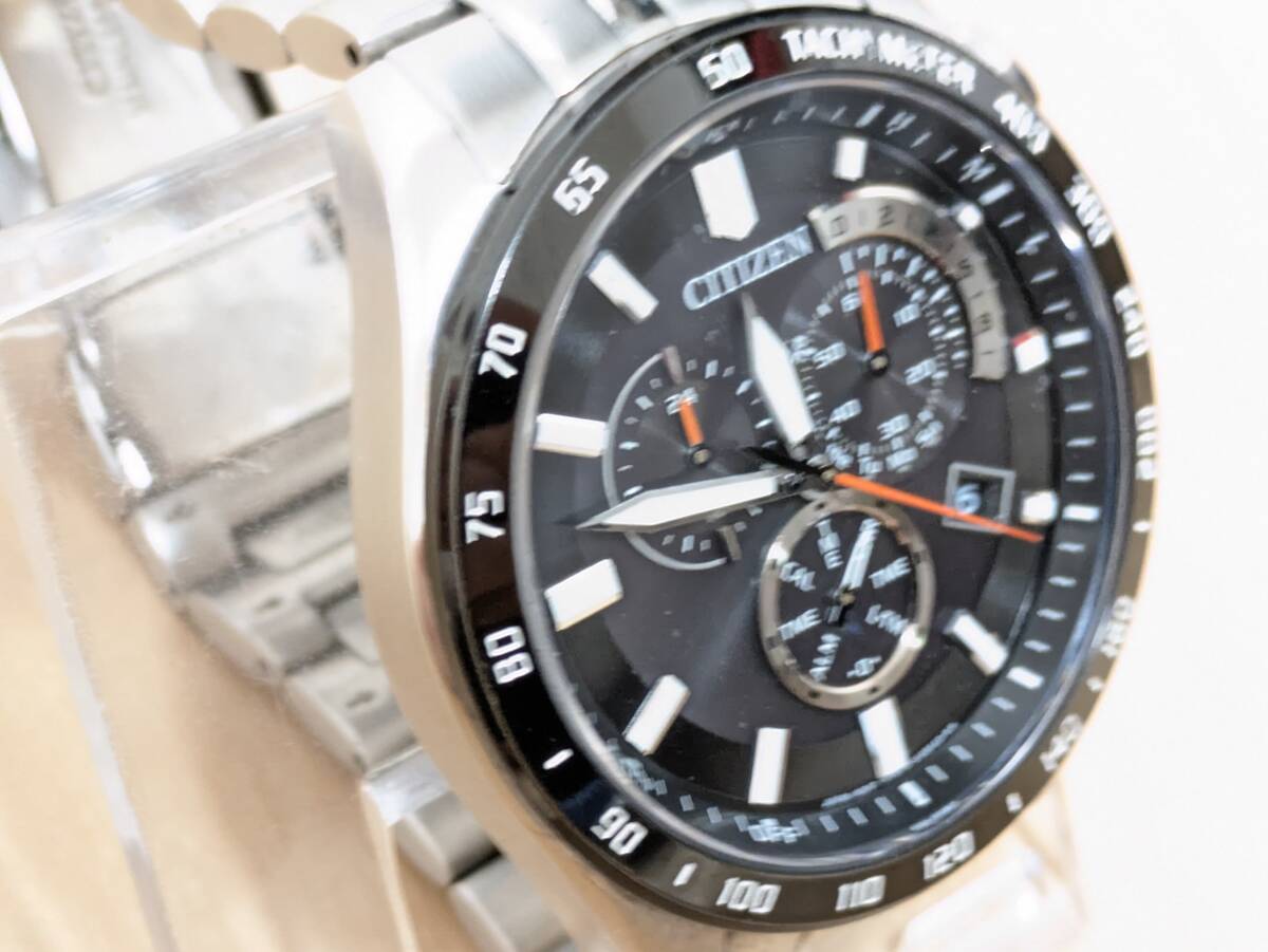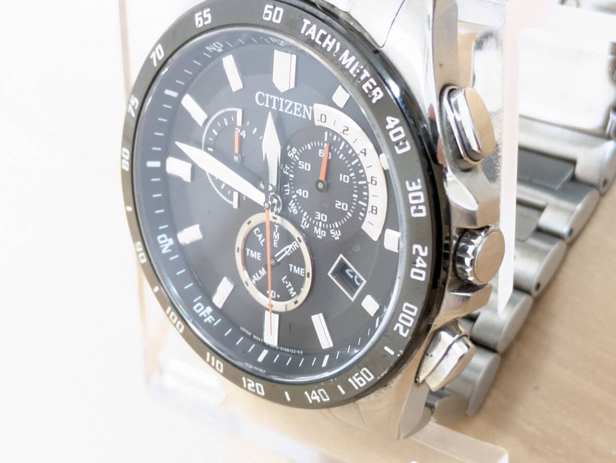 CITIZEN Eco-Drive シチズン エコドライブ E610-S074339 クロノグラフ 黒文字盤 メンズ腕時計 電波ソーラー 現状品 中古◆27942