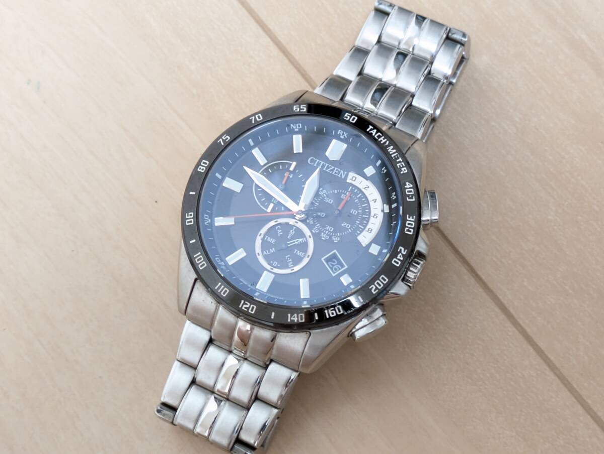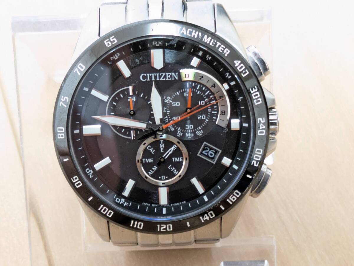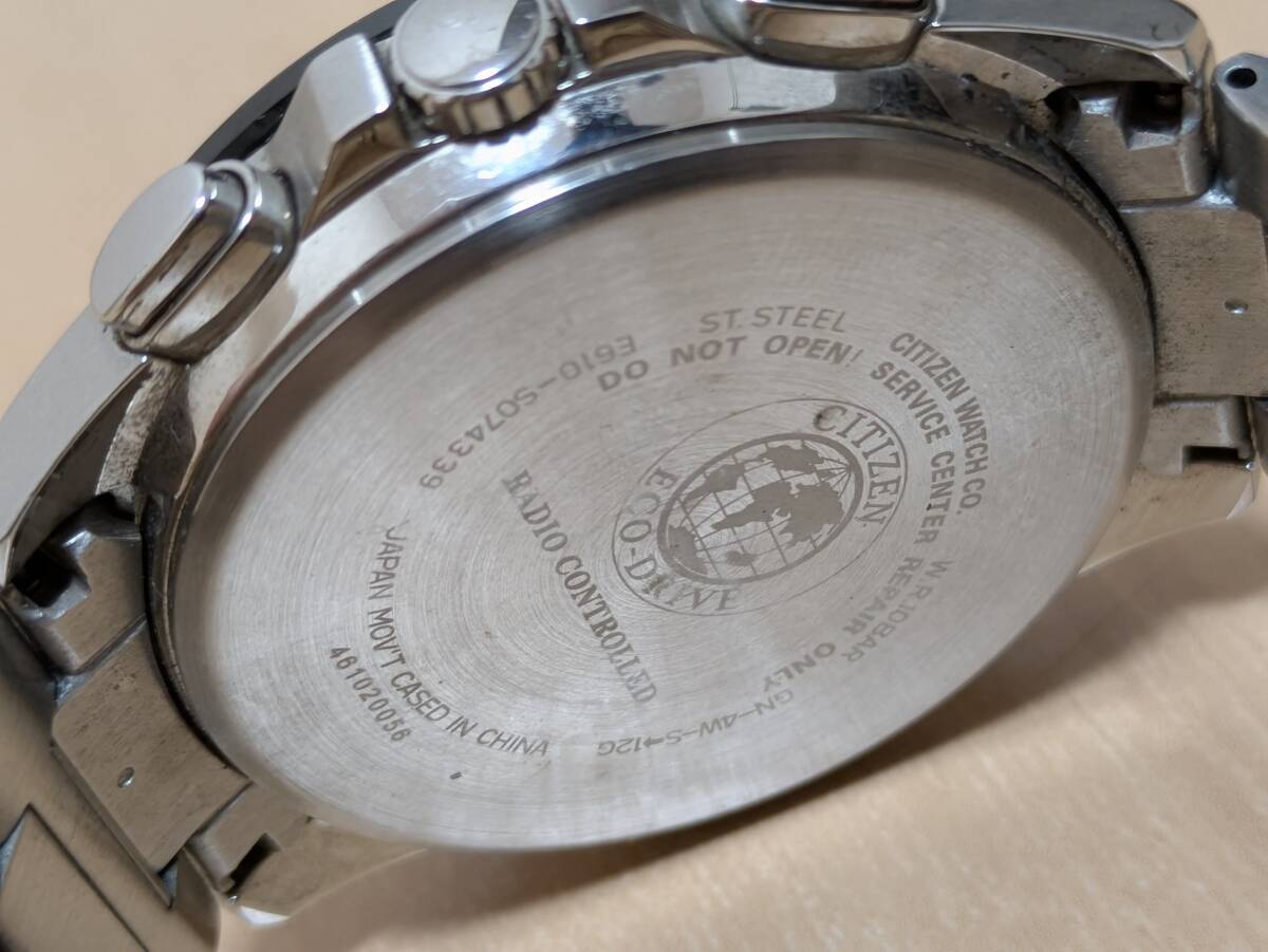 CITIZEN Eco-Drive シチズン エコドライブ E610-S074339 クロノグラフ 黒文字盤 メンズ腕時計 電波ソーラー 現状品 中古◆27942