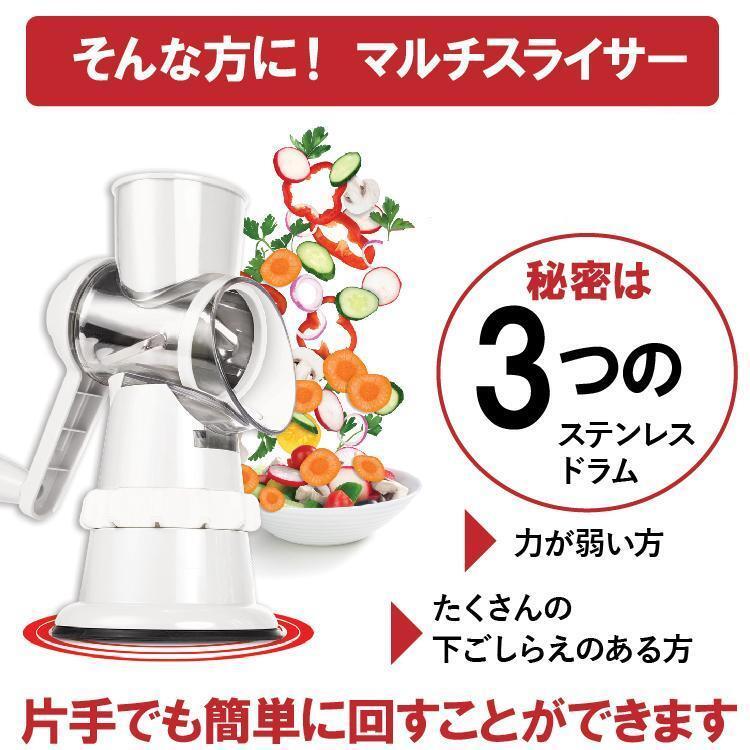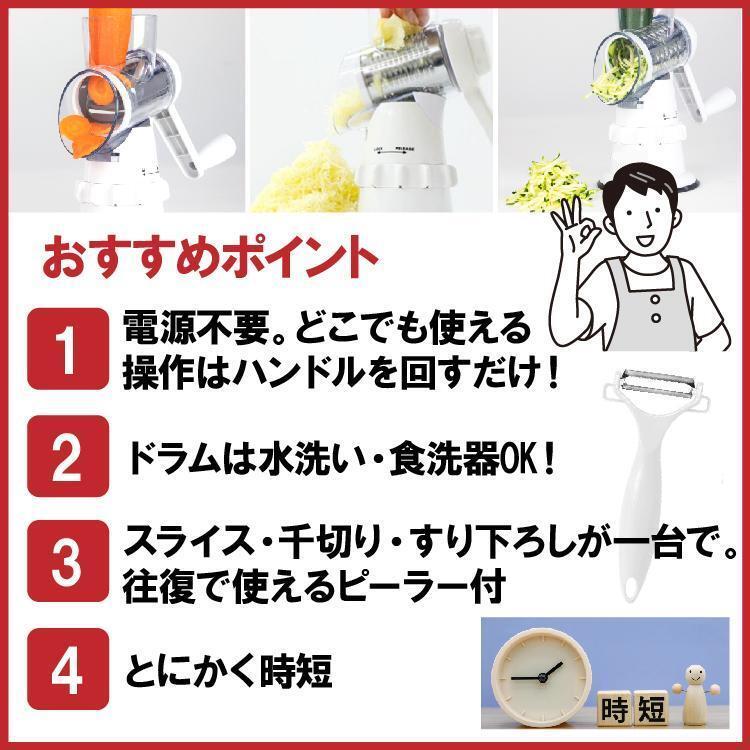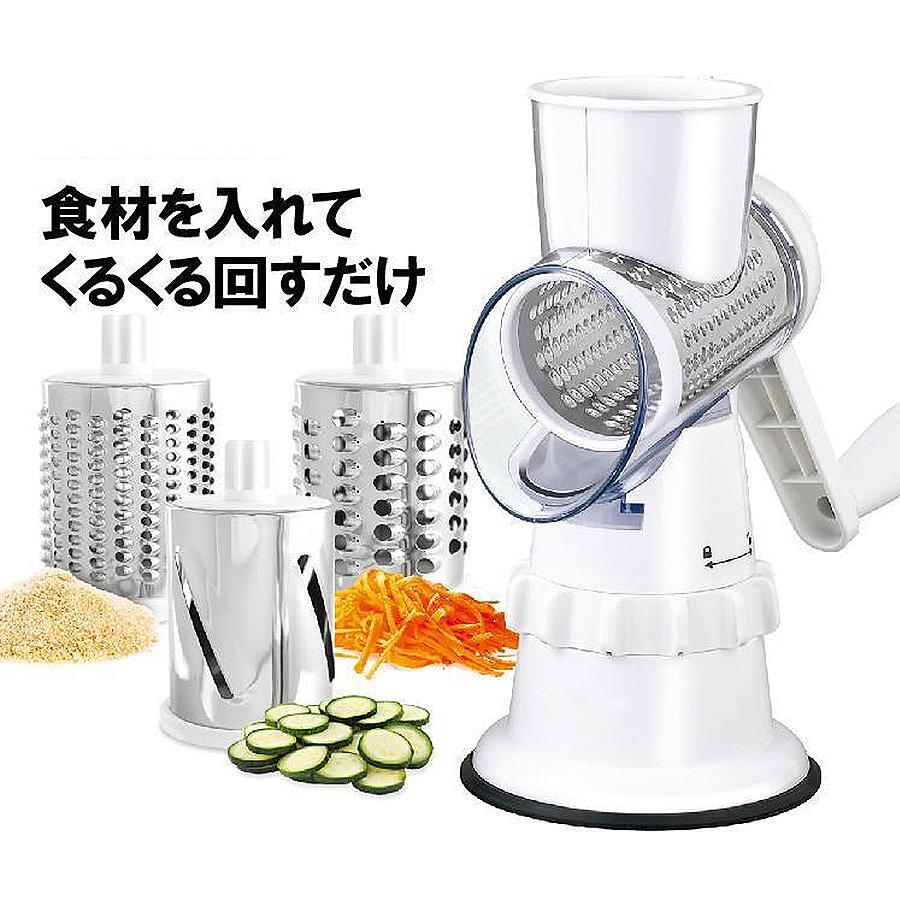 スライサー 電源不要 ハンドルを回すだけ 1台3役 万能 スライサー 千切り 下ごしらえ 細切り すりおろし