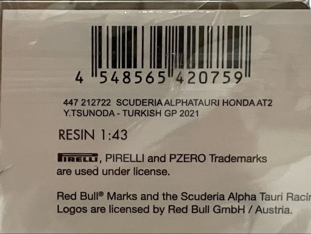 ミニチャンプス【ありがとう】レインタイヤ1/43 スクーデリア アルファタウリ ホンダ AT02 #22 角田裕毅 トルコGP 2021 【MINICHAMPS】【PMA】