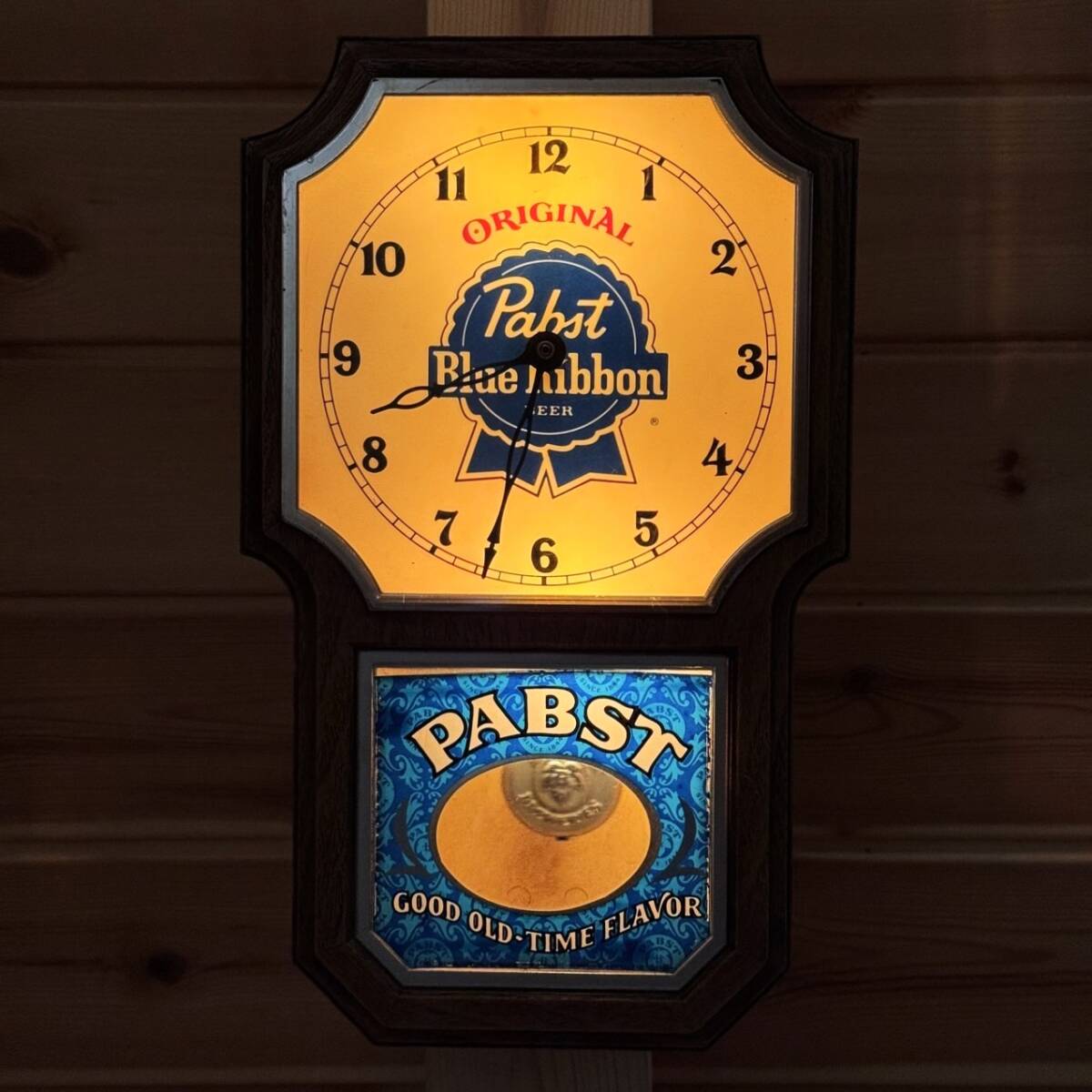 Pabst Blue Ribbon 1970's 振り子時計 壁掛け時計 掛時計 ビンテージ パブスト ブルーリボン ライト付き