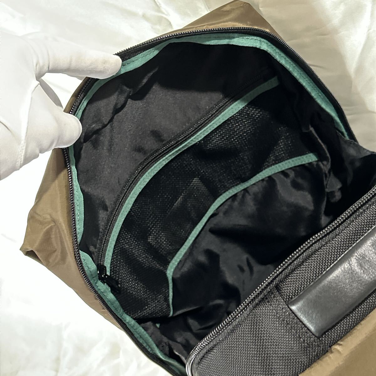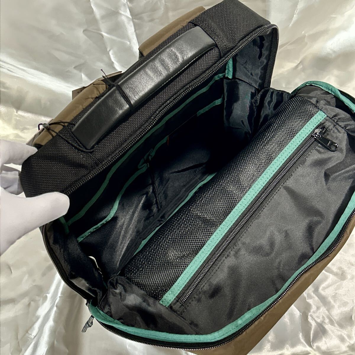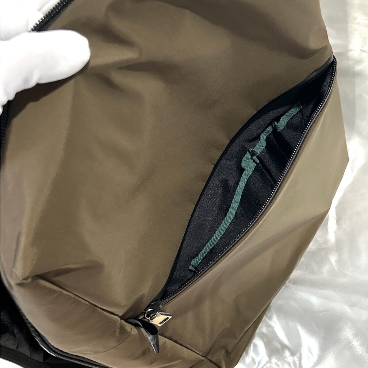 汚れに強く耐久性に優れた撥水レザーを採用し、持ち心地の良いハンドル。メイン収納はダブルファスナー式で、引手には特殊技術を駆使してラバーを吸着させた「shrink Puller」を使用しています。
