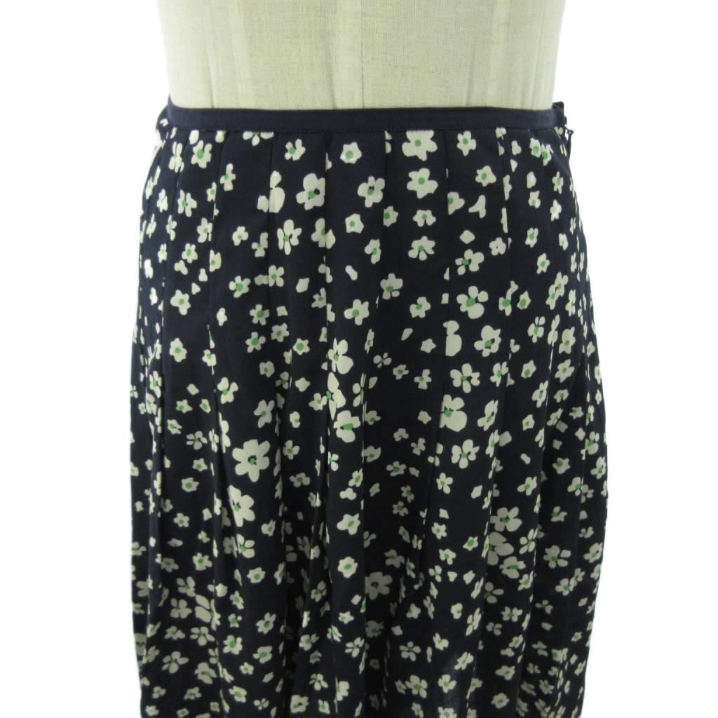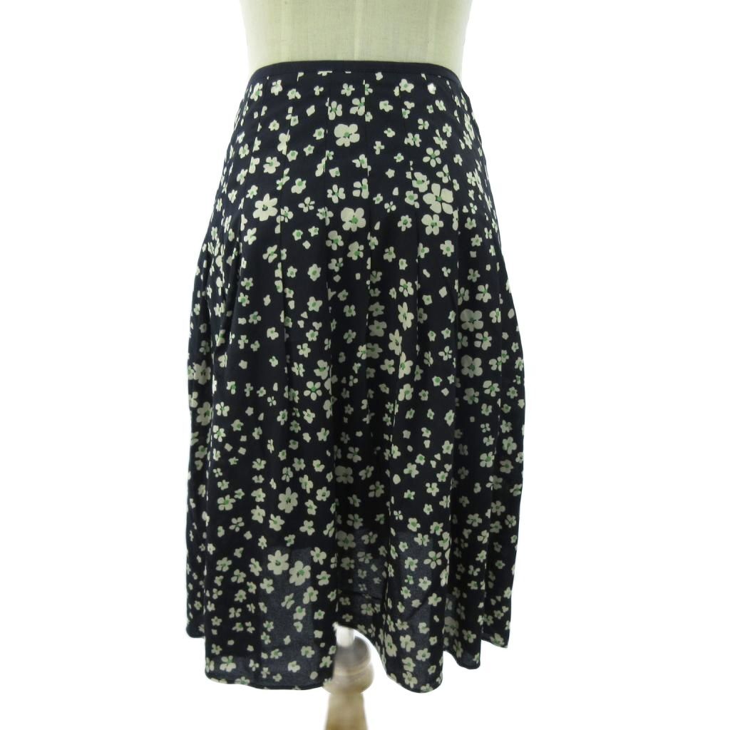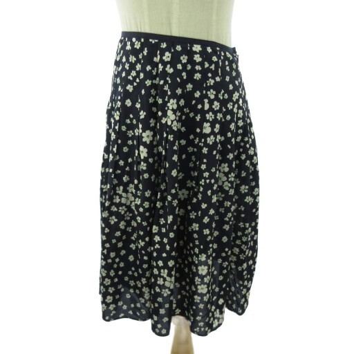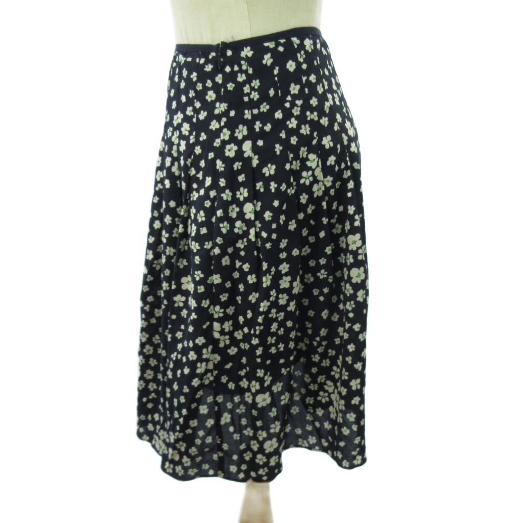 ローラアシュレイ LAURA ASHLEY 美品 スカート 花柄 ひざ丈 7 紺 ネイビー 0924 ■YHS4 レディース
