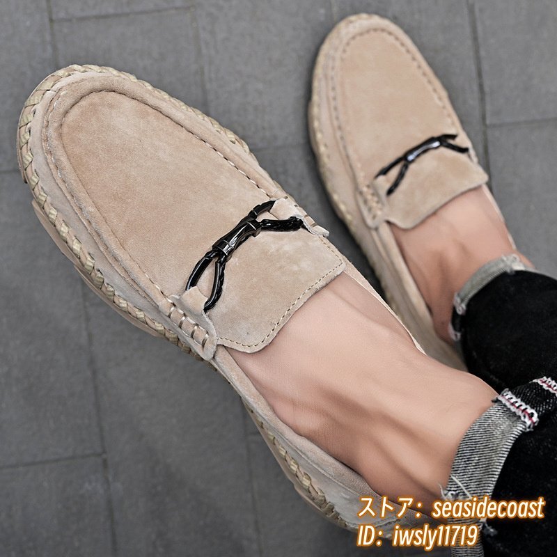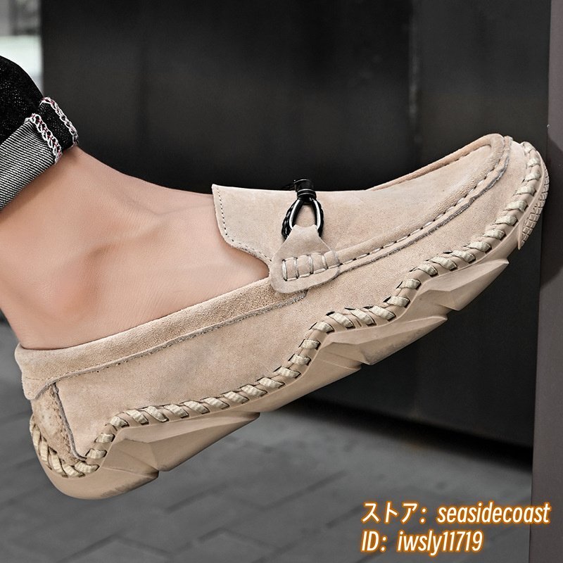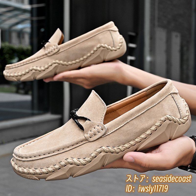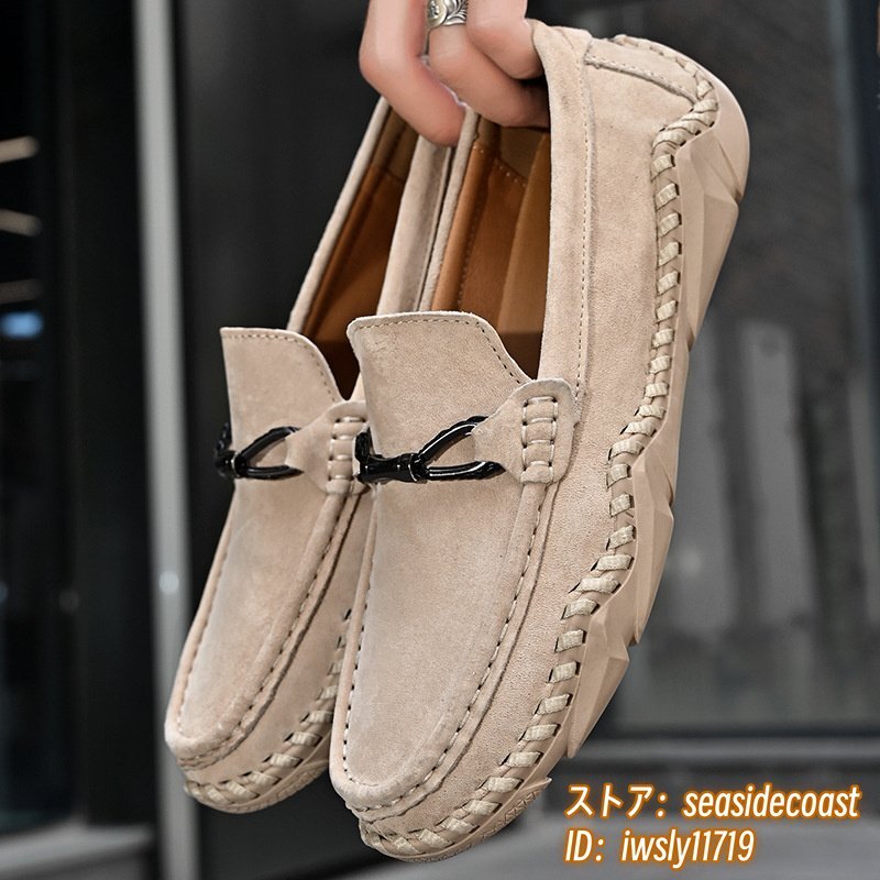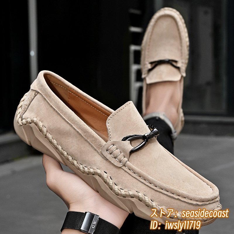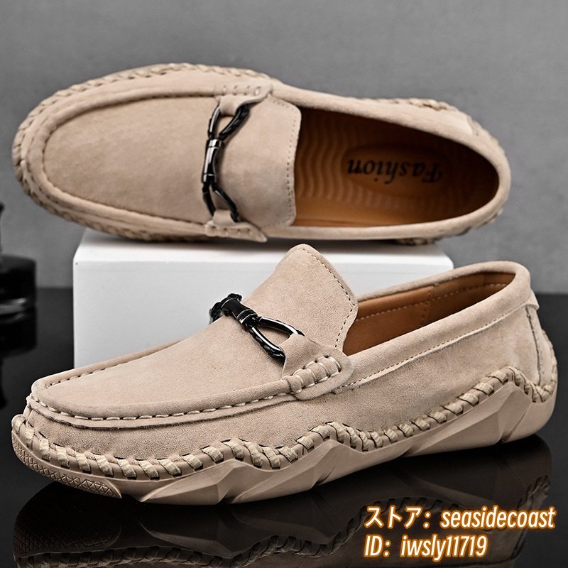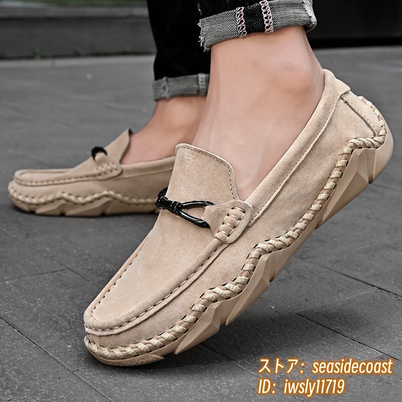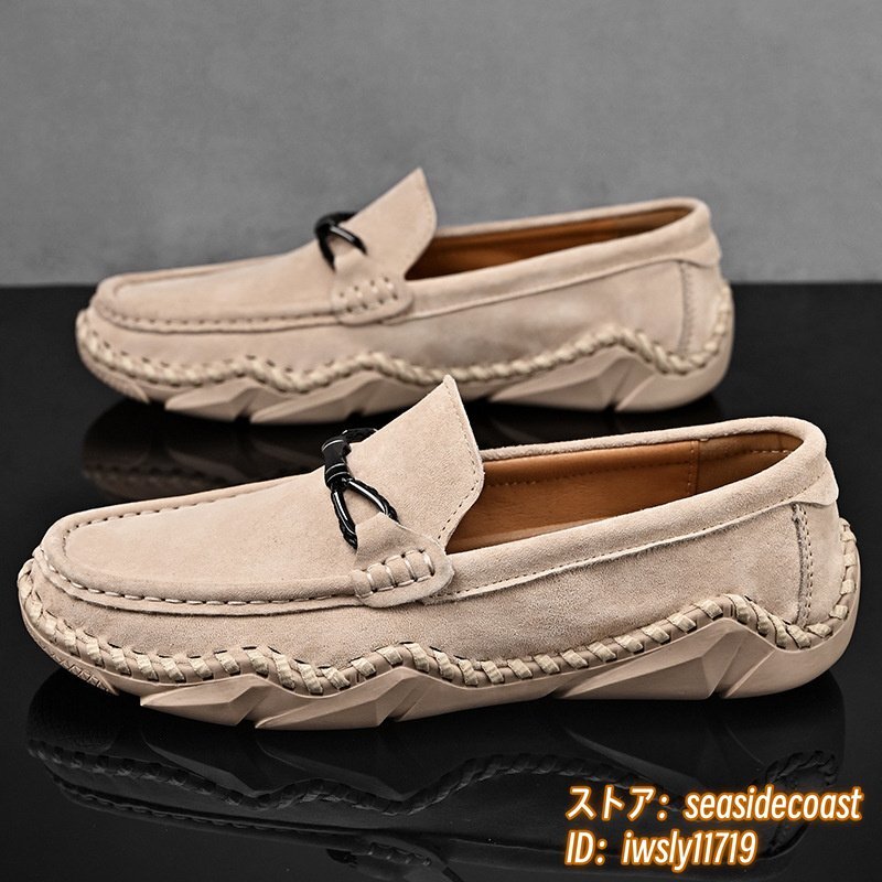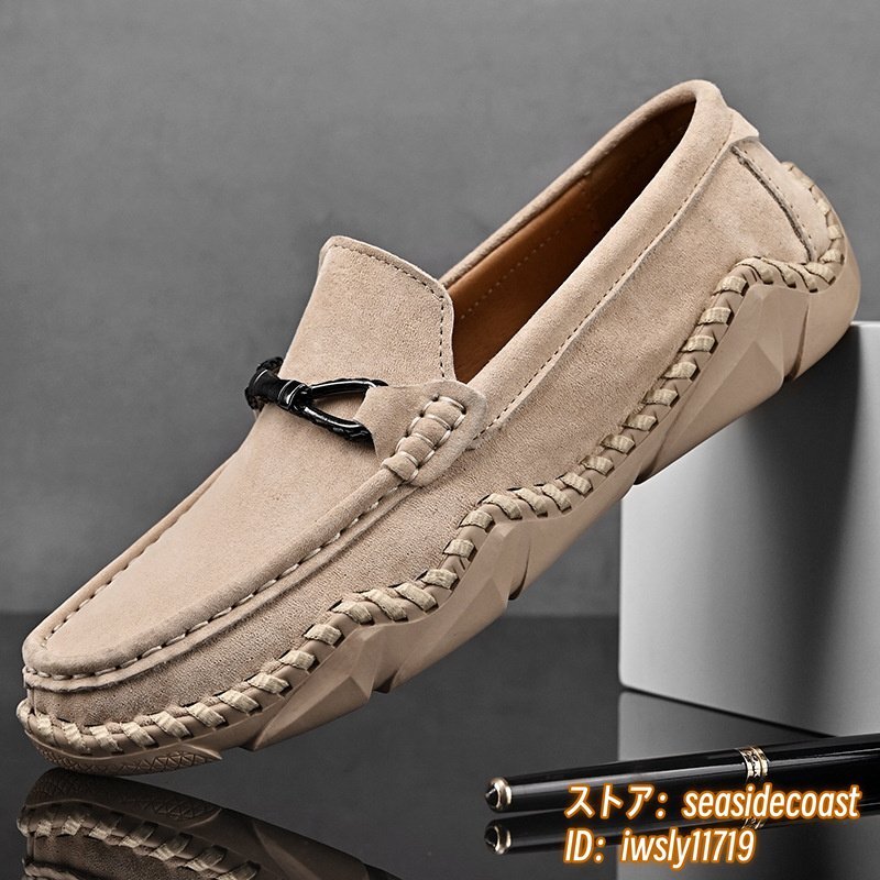 新品■ドライビングシューズ メンズ 本革 ローファー スリッポン スエード革 牛革 レザーシューズ アウトドア 通気性 快適 ベージュ 26.5cm