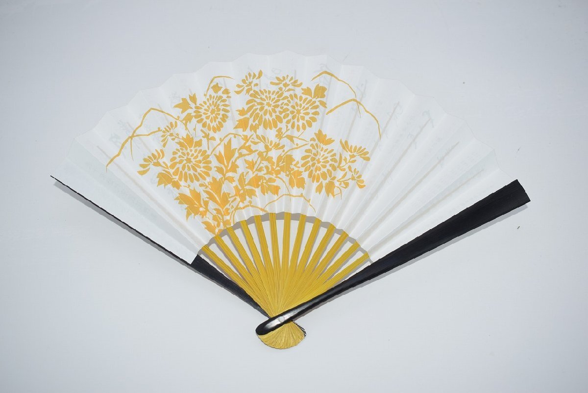 茶道具用 扇子 黒塗 表千家(利休~而妙斎)花押集 利休菊 6.5寸 ougi-038c ※画像は見本です。
