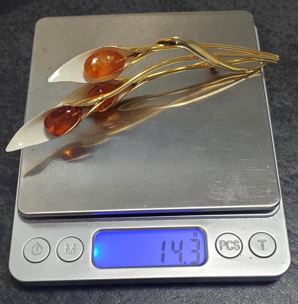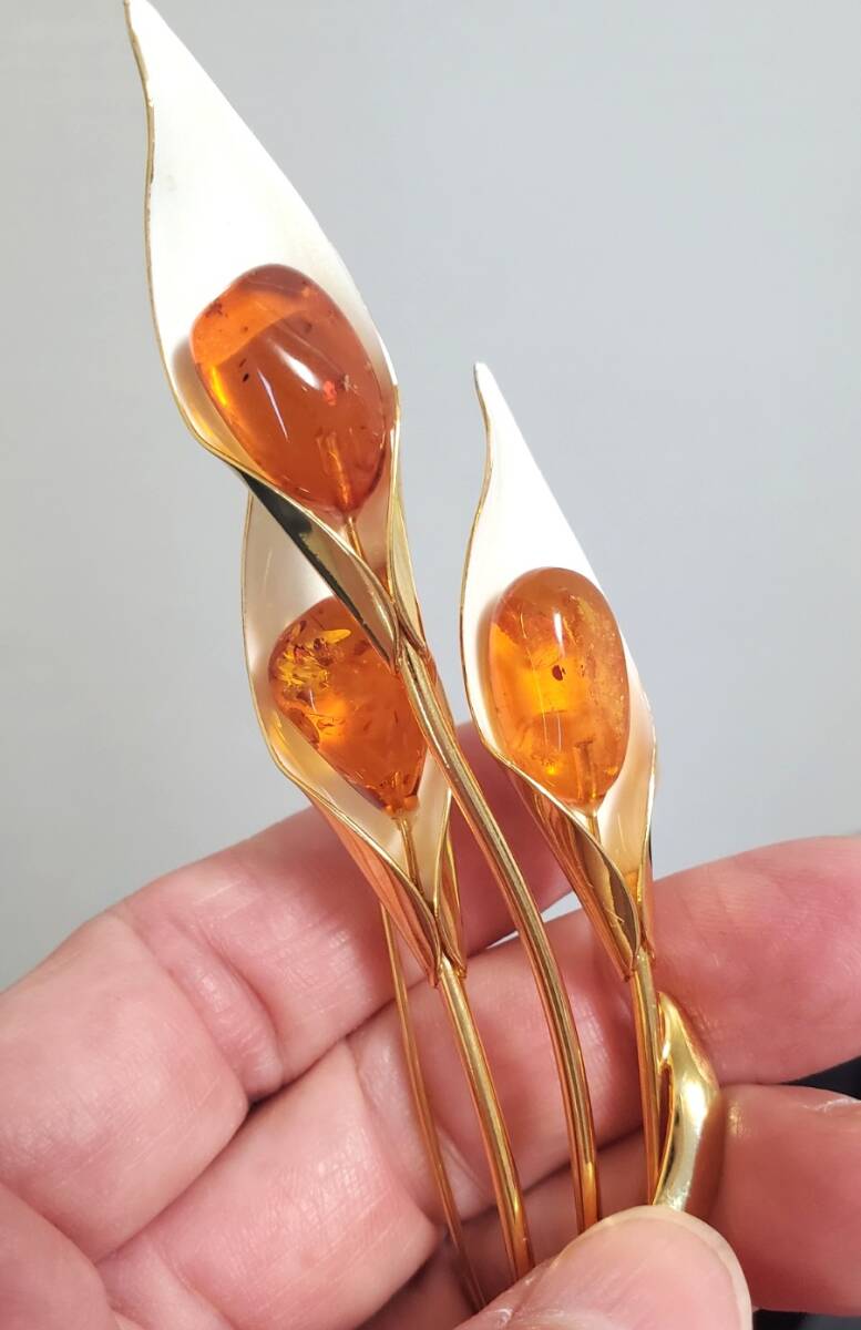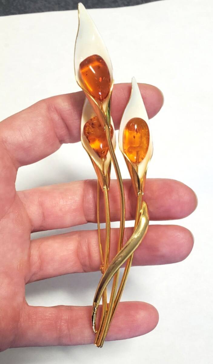 琥珀 コハク ブローチ レディース アクセサリー 14,3g 美品