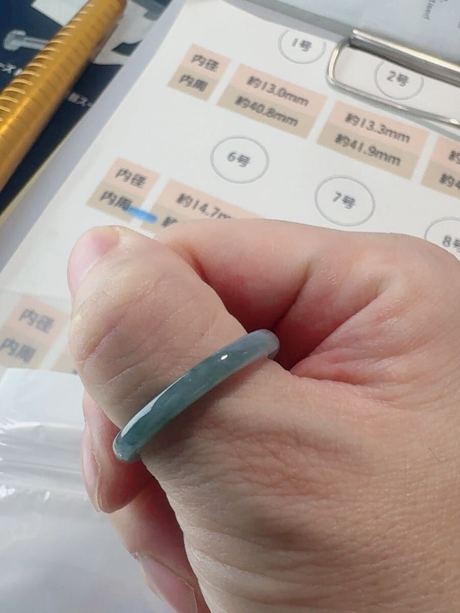 R2-02157天然本翡翠《本物保証》 藍水翡翠 指輪約23~24号 一点物 希少 縁起物 お守り 魔除け 昇進 成功 風水 金運 財運 幸運 幸福
