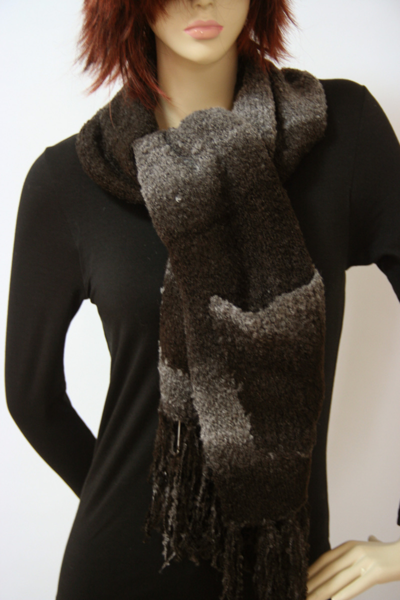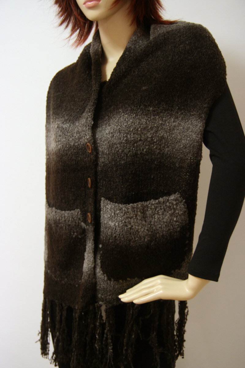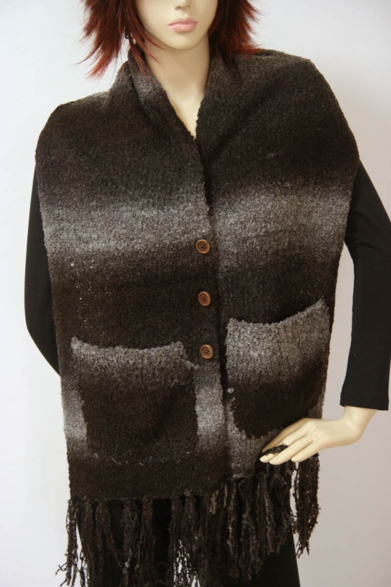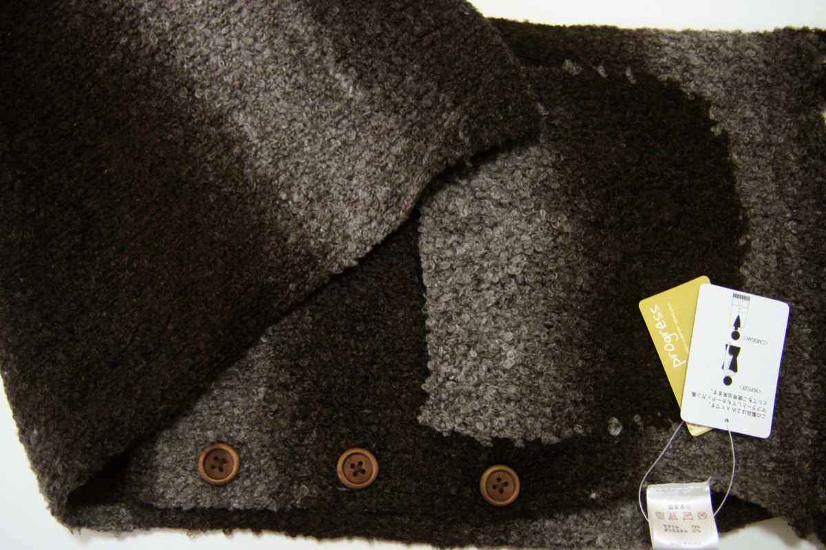 送料無料◆超お得◆2枚組◆2WAYタイプ◆マフラー&カーディガン風◆ボタン留め◆ポケット付き◆手編み◆グラデーションマフラー(ブラウン)