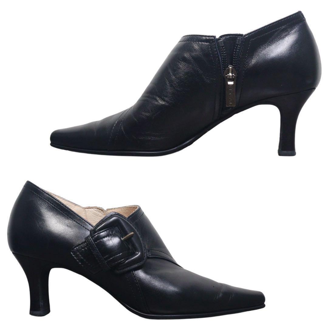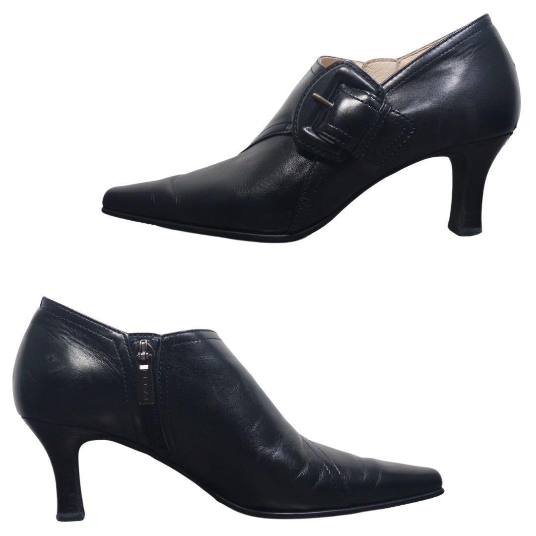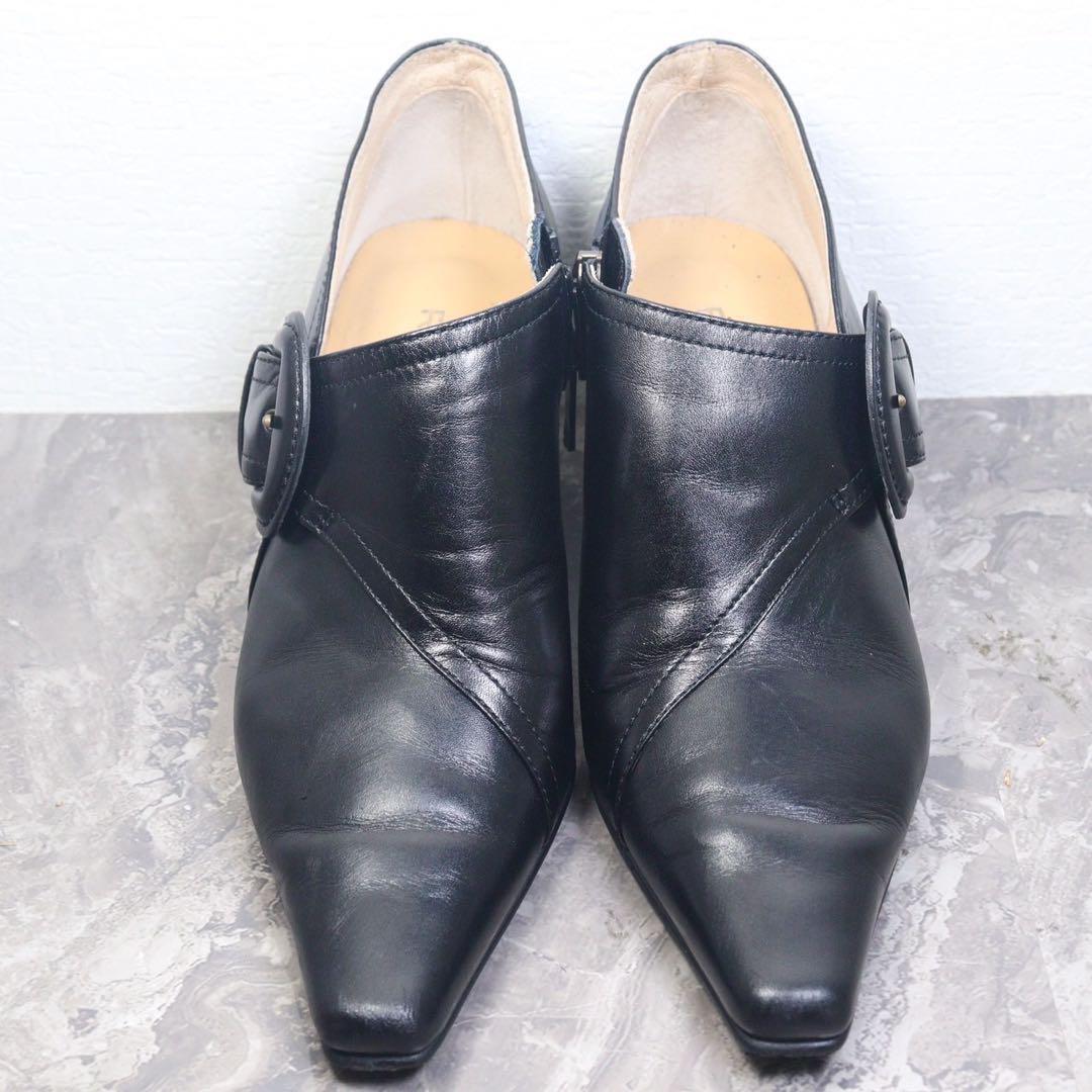 REGAL リーガル ブーティ パンプス 黒 レザー ベルト サイドジップ