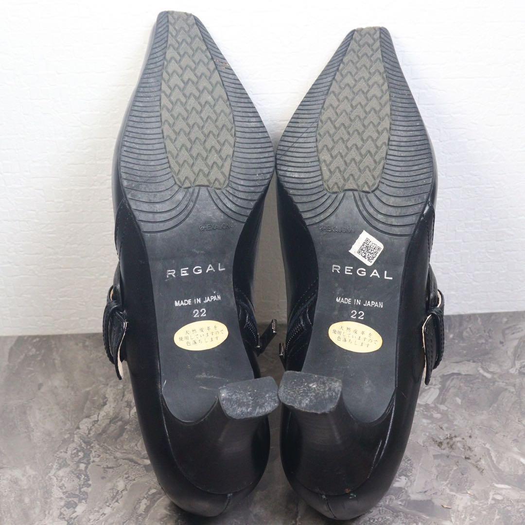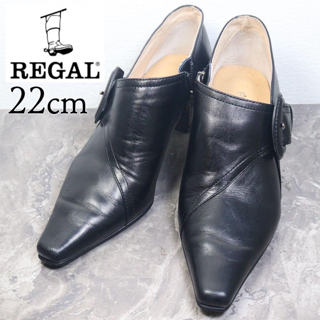 【美品】REGAL リーガル 22 パンプス ブーティ レザー サイドジップ 黒