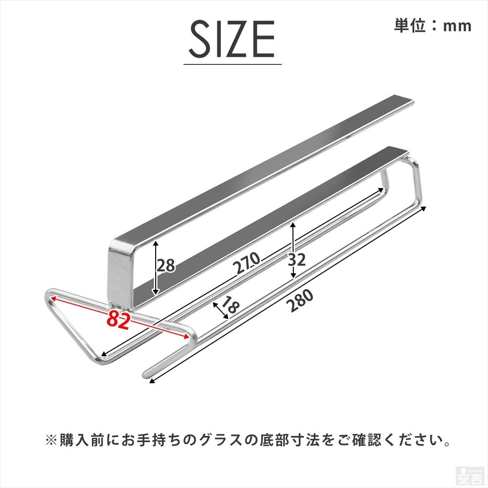 特長 | ・高さ28mmまでの棚板などに差し込む差し込み式のグラスハンガー。 ・ビスを使用しないので棚を傷つけません。 |