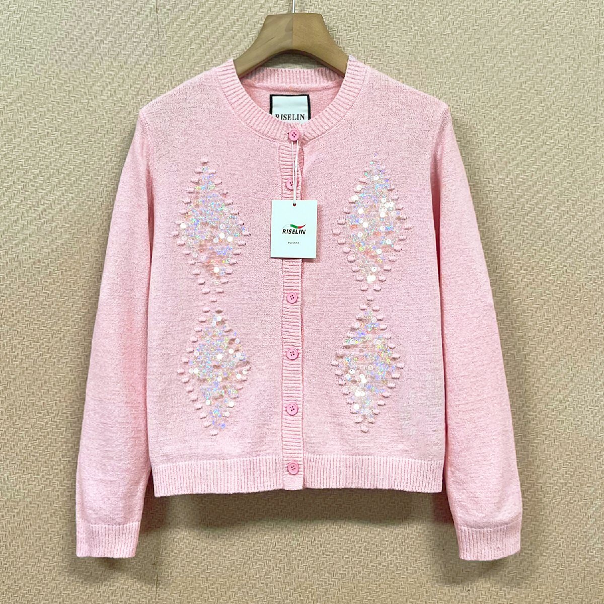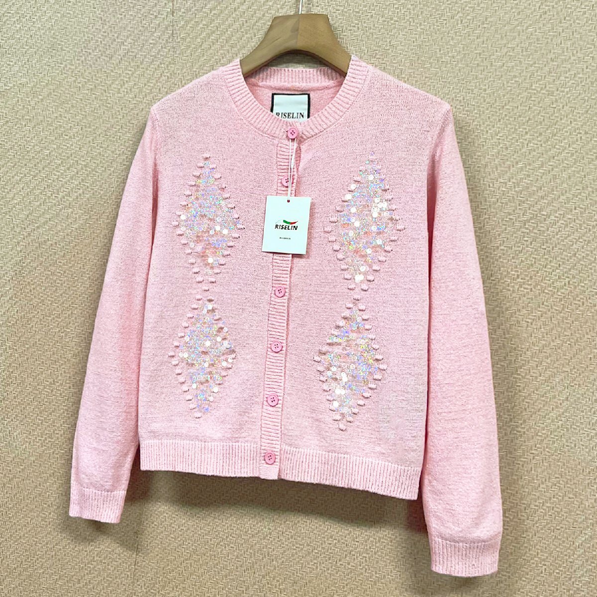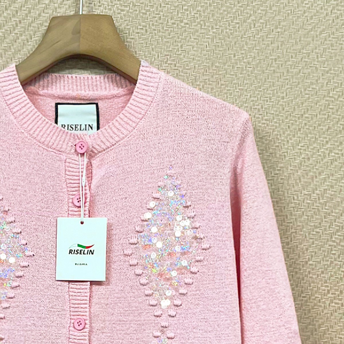 個性ヨーロッパ製※定価5万◆ブルガリア発※RISELIN カーディガン ウール混 薄手 スパンコール キラキラ 気品 セーター デート M/46