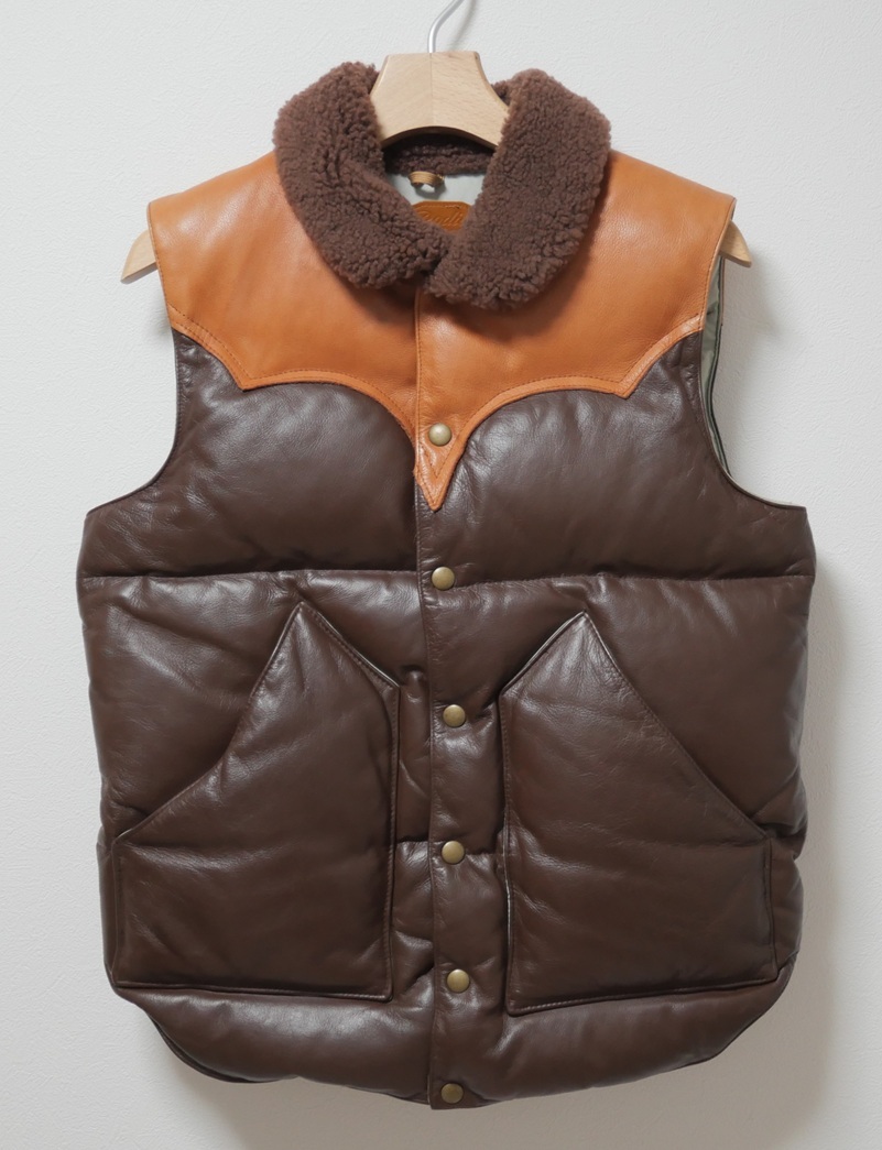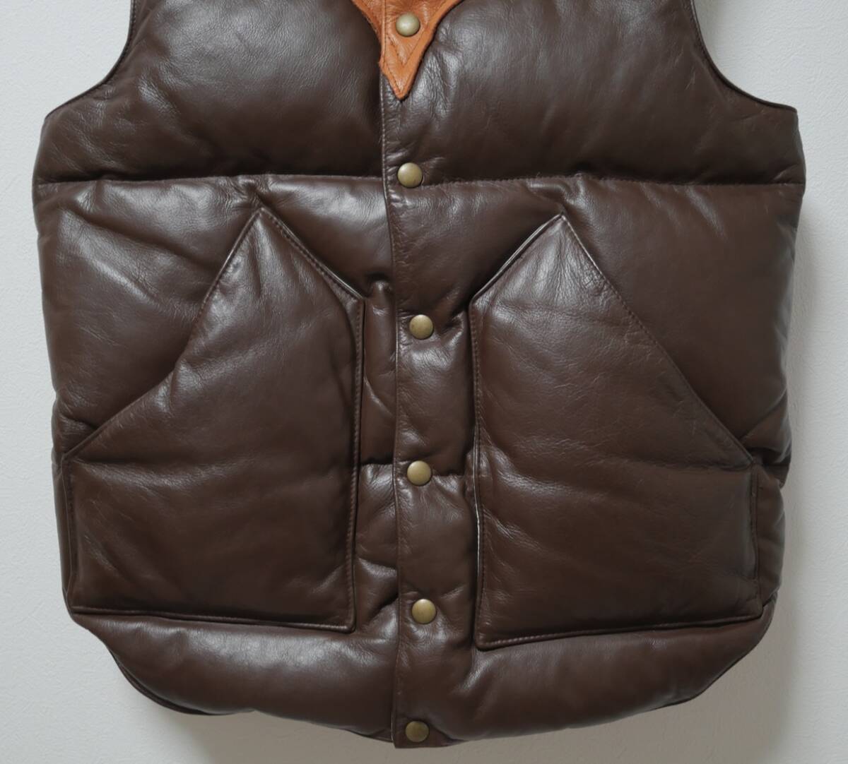 WAREHOUSE ウエアハウス オールレザー ダウンベスト 茶 S 本革