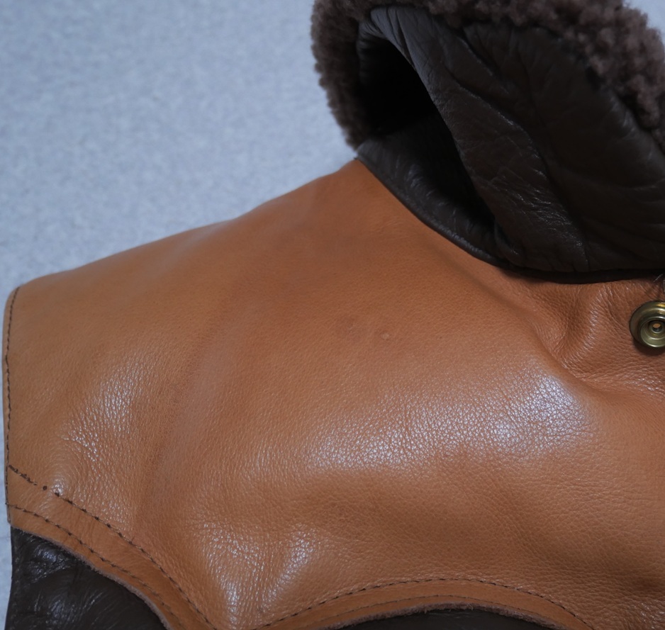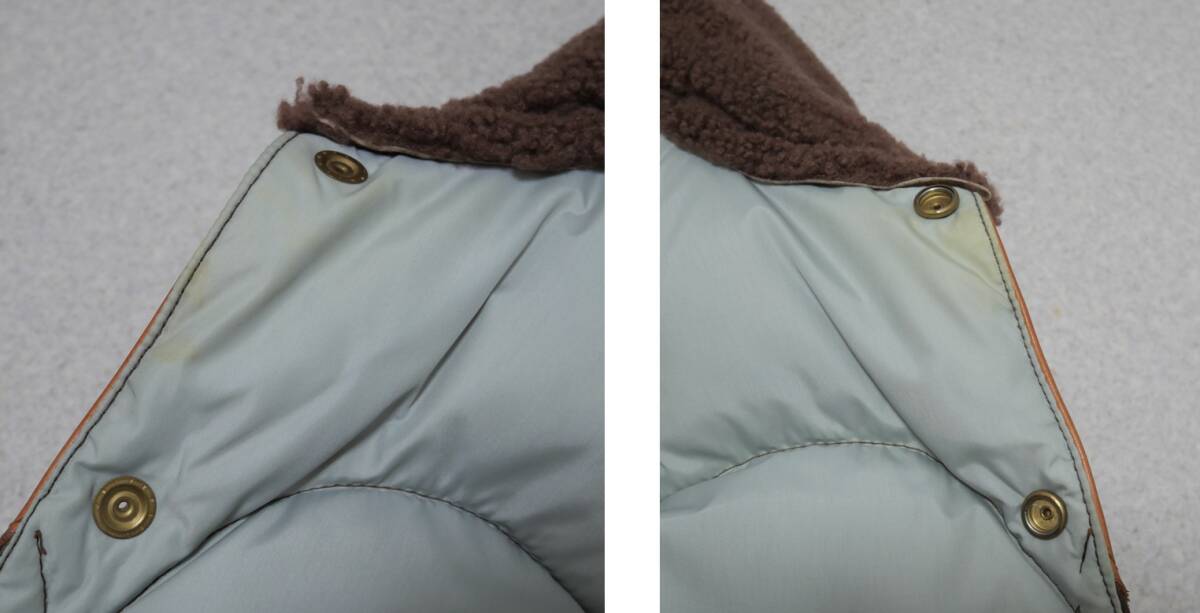 (状態)着用感あり、レザーに多少シミ、裏地にシミや変色はありますが、着用に支障のあるようなダメージはありませんので、問題なく着用できます。
