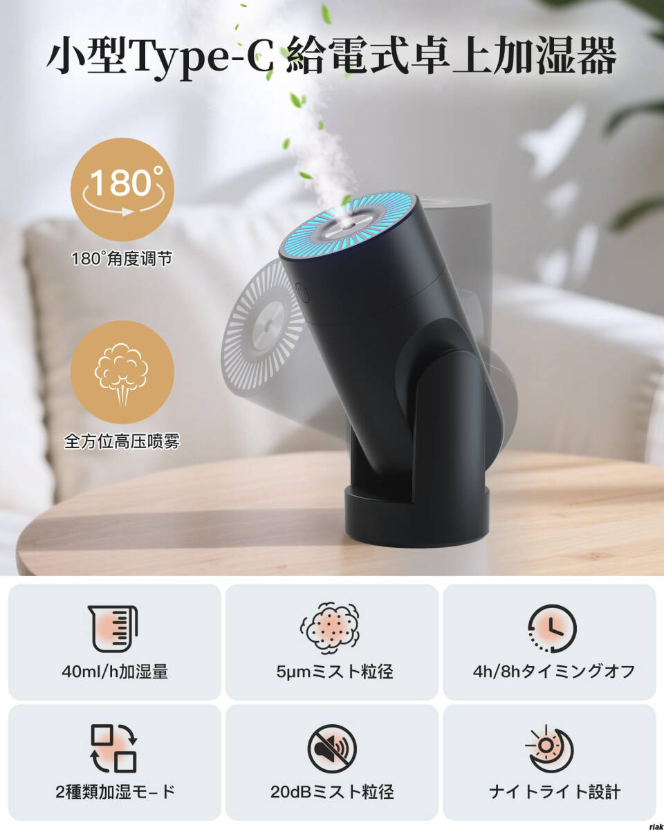 静音設計で就寝中や仕事中も気にならず、Type-C給電でパソコンやモバイルバッテリーからも使用可能です。