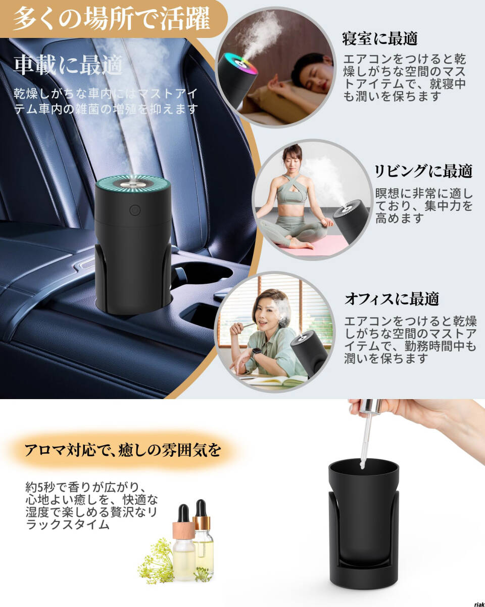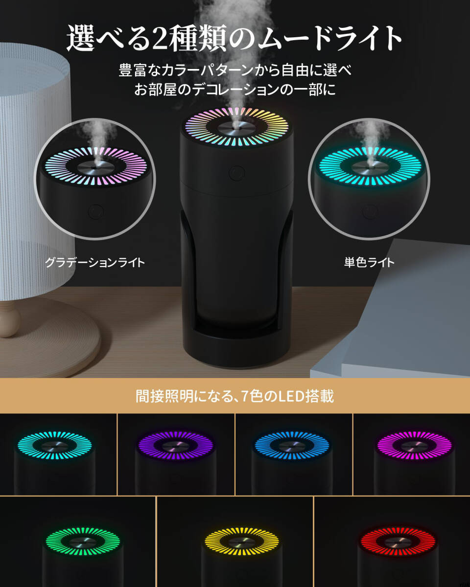 【超音波式でナノミストを生成、肌や唇の乾燥を防ぐ】 卓上加湿器 車用加湿器 ナノミスト 超音波 アロマ LEDライト 小型加湿器 静音