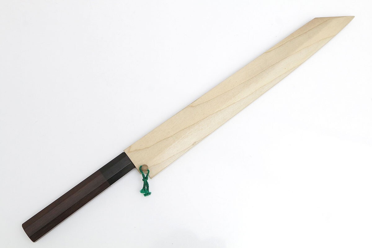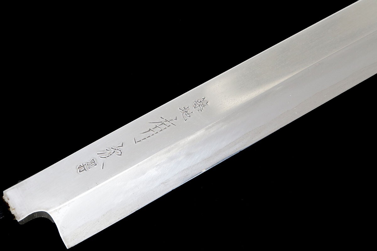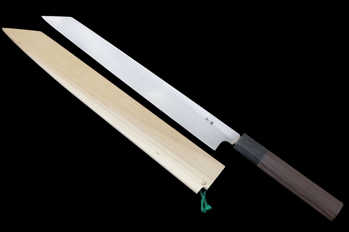 有次 切付柳刃包丁 霞 尺 青二鋼 別打 黒檀柄 白鞘・箱付