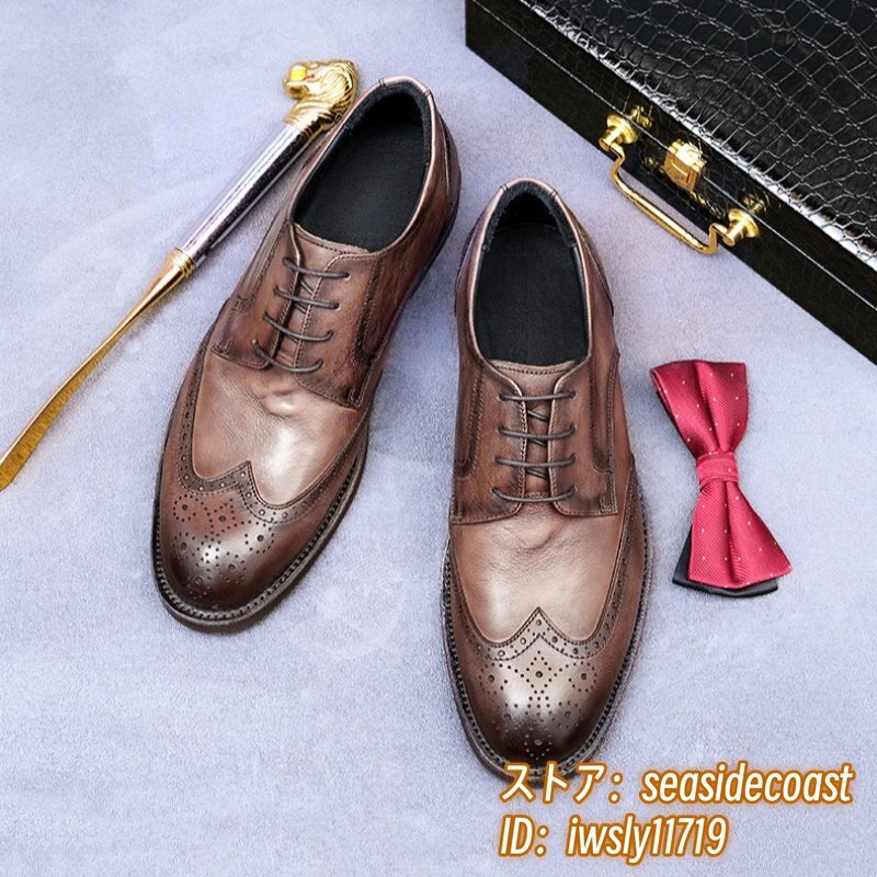 定価13万超★ビジネスシューズ メンズ 本革 超希少牛革 職人手作り 彫り レザーシューズ 冠婚葬祭 革靴 紳士靴 フォーマル ブラウン 26.0cm