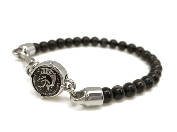 ■ブランド名 DIESEL■品名 DX0848040 ブラック ブレスレット■対象 メンズ レディース■素材 ステンレス■付属品 保存箱、保存袋■カラー ブラック×シルバー■サイズ 周囲約20~21.5cmまで対応(約1.5cm調節可)、幅約0.6cm▼商品説明 アジャスターで長さ調節が可能。ロゴマークがさりげなくブランドを主張したお洒落なデザインのブレスレットです♪ 【並行輸入商品-Italy】付属品の仕様は、製造時期などにより、変わることがございますので、予めご了承願います。