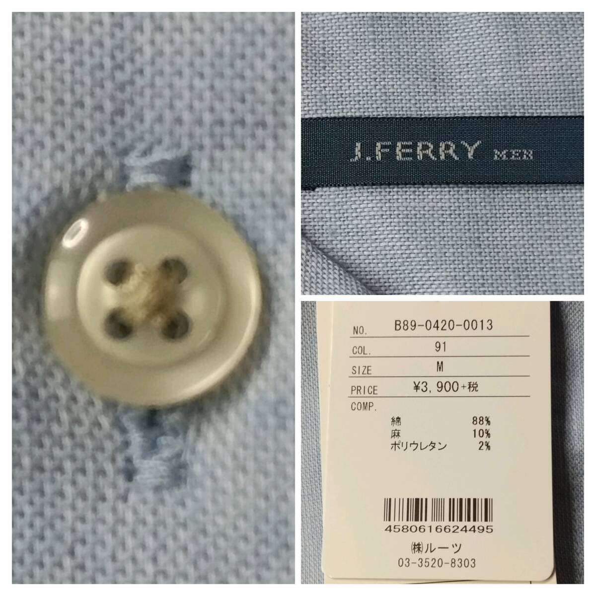 【未使用品・デッドストック】ジェイフェリー 長袖シャツ コットンリネン ライトブルー 水色 Mサイズ J.FERRY MEN