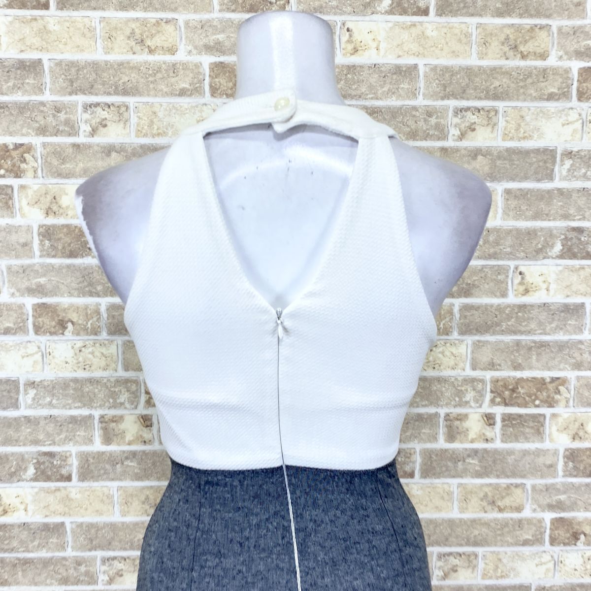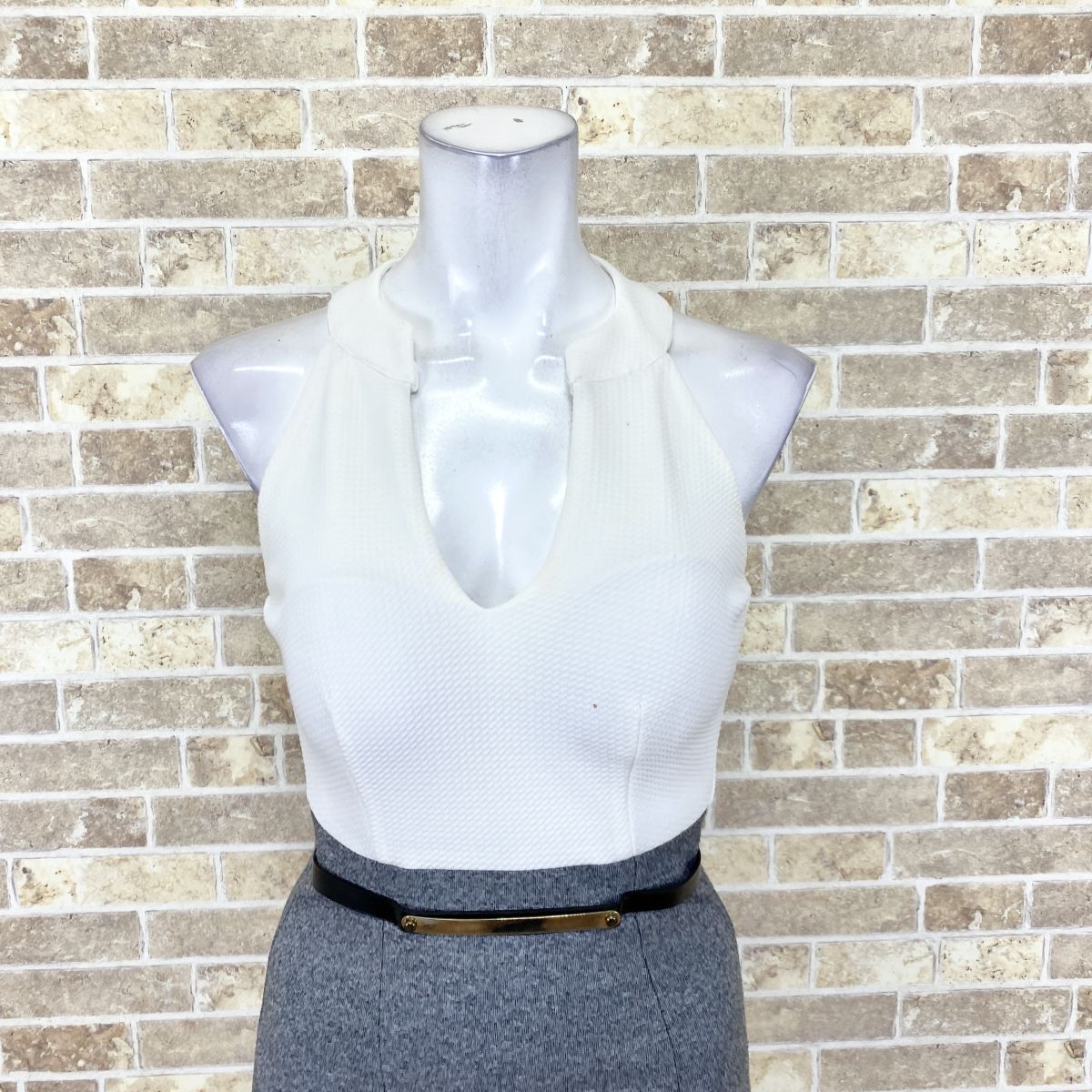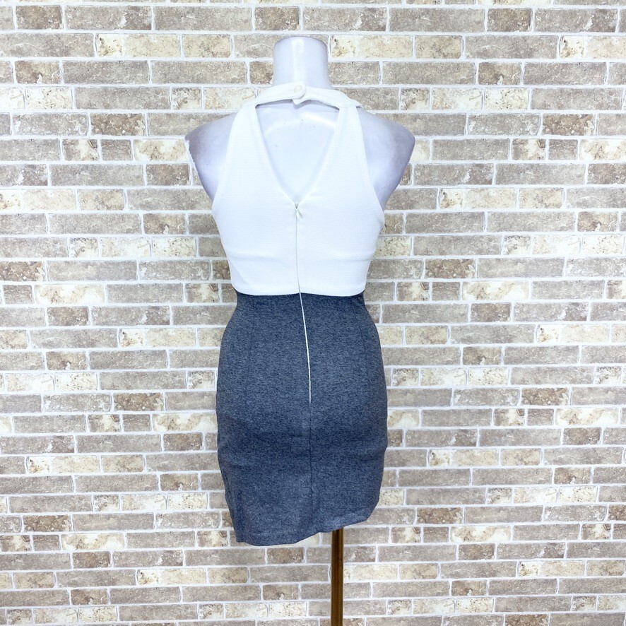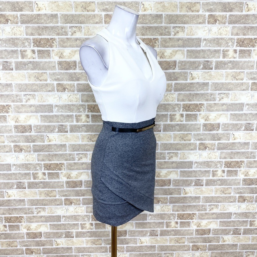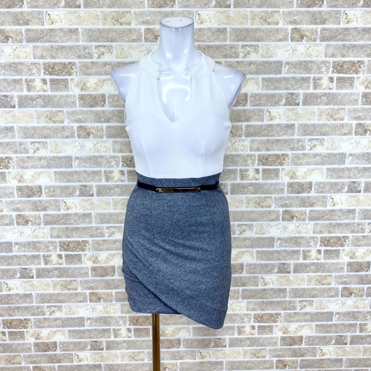 1円 ドレス C.R.E.A.M ミニドレス S 白グレイ系 カラードレス キャバドレ 発表会 イベント 中古14549