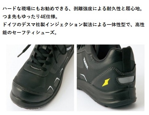 ドイツ、デスマ社の製法による一体性型で、高性能のセーフティシューズ。