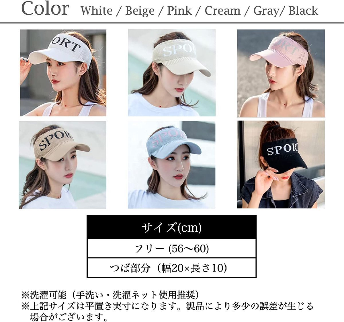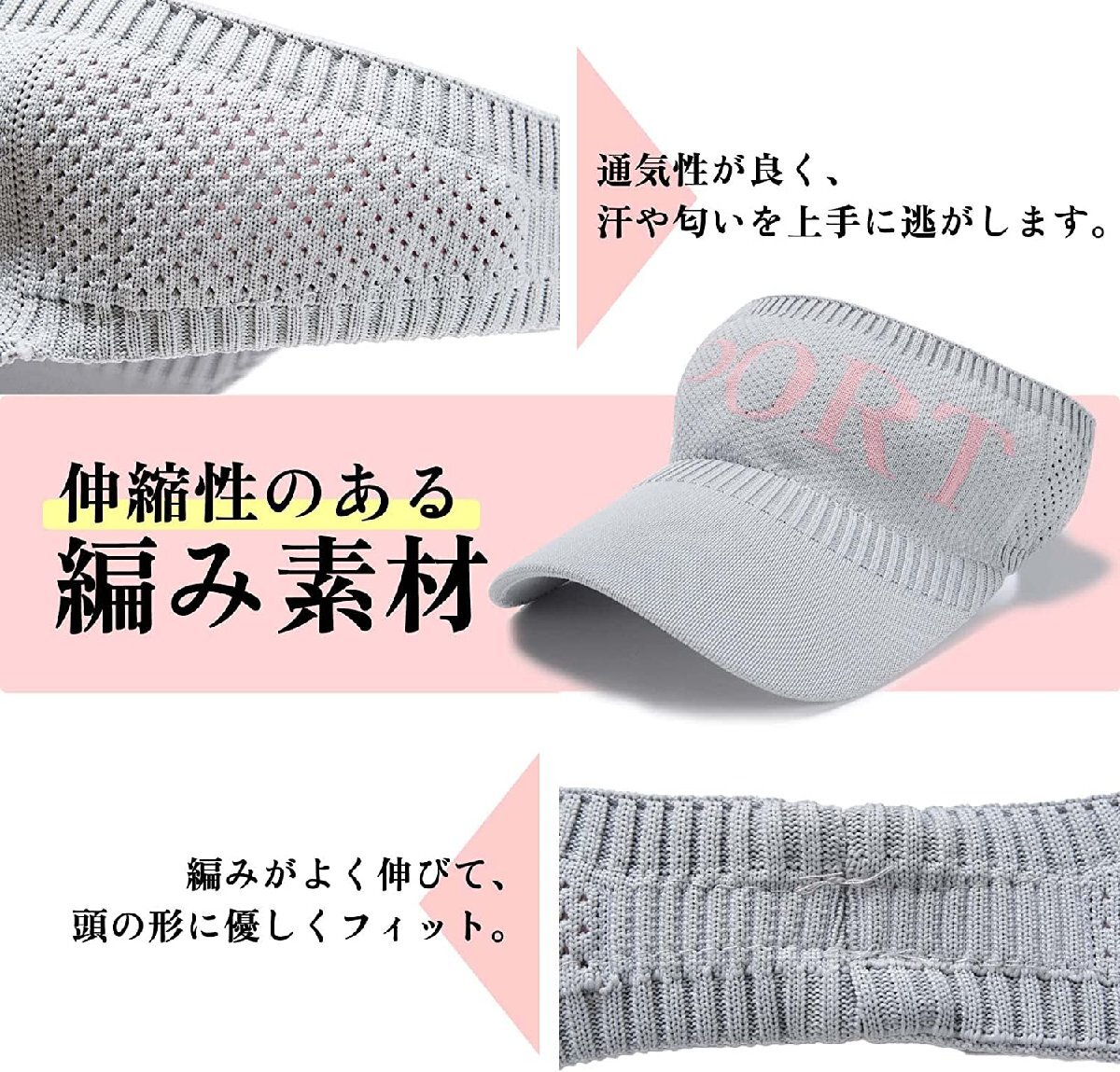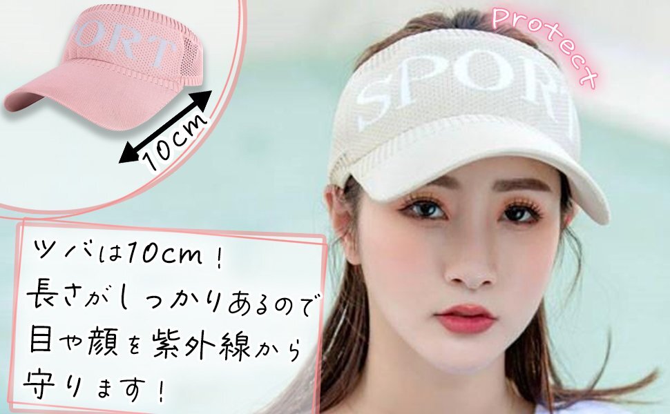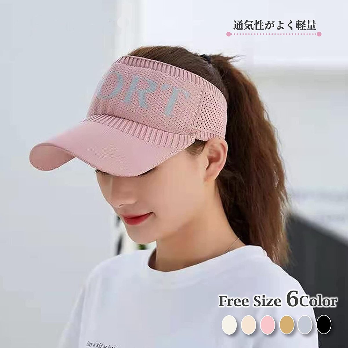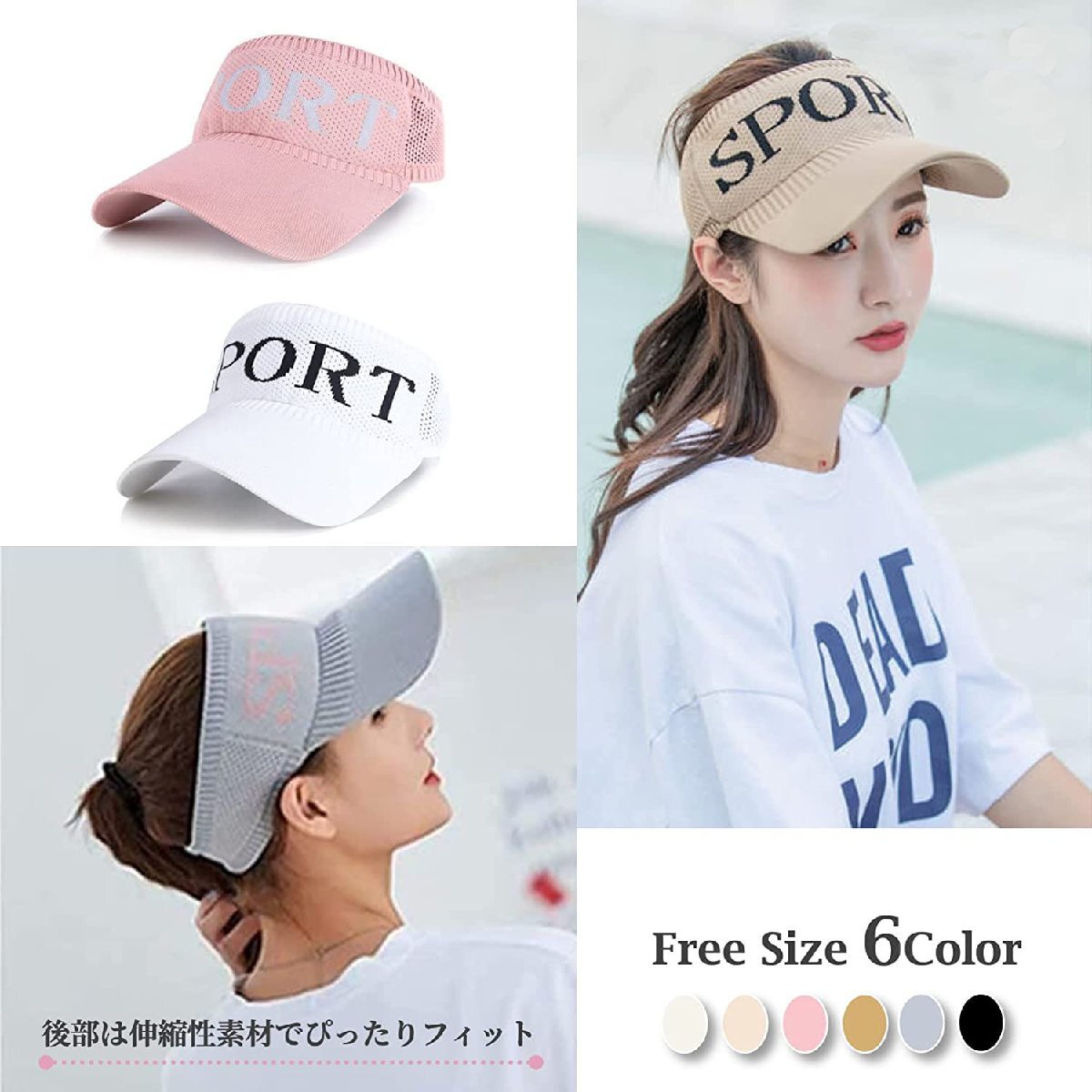 帽子 レディース サンバイザー ゴルフ 日焼け防止 ジョギング 帽子 吸汗速乾 UVカット 紫外線対策 軽量-ホワイト