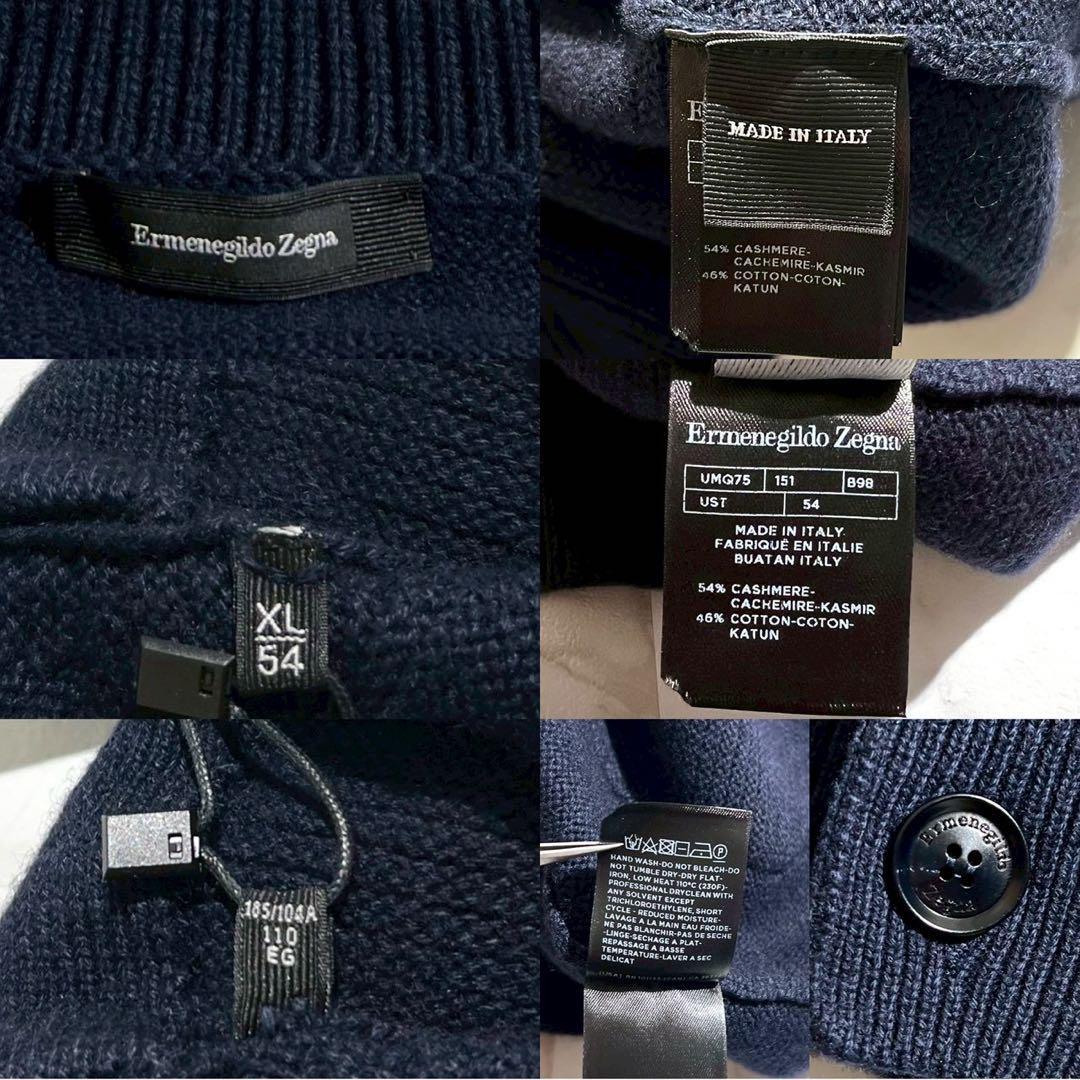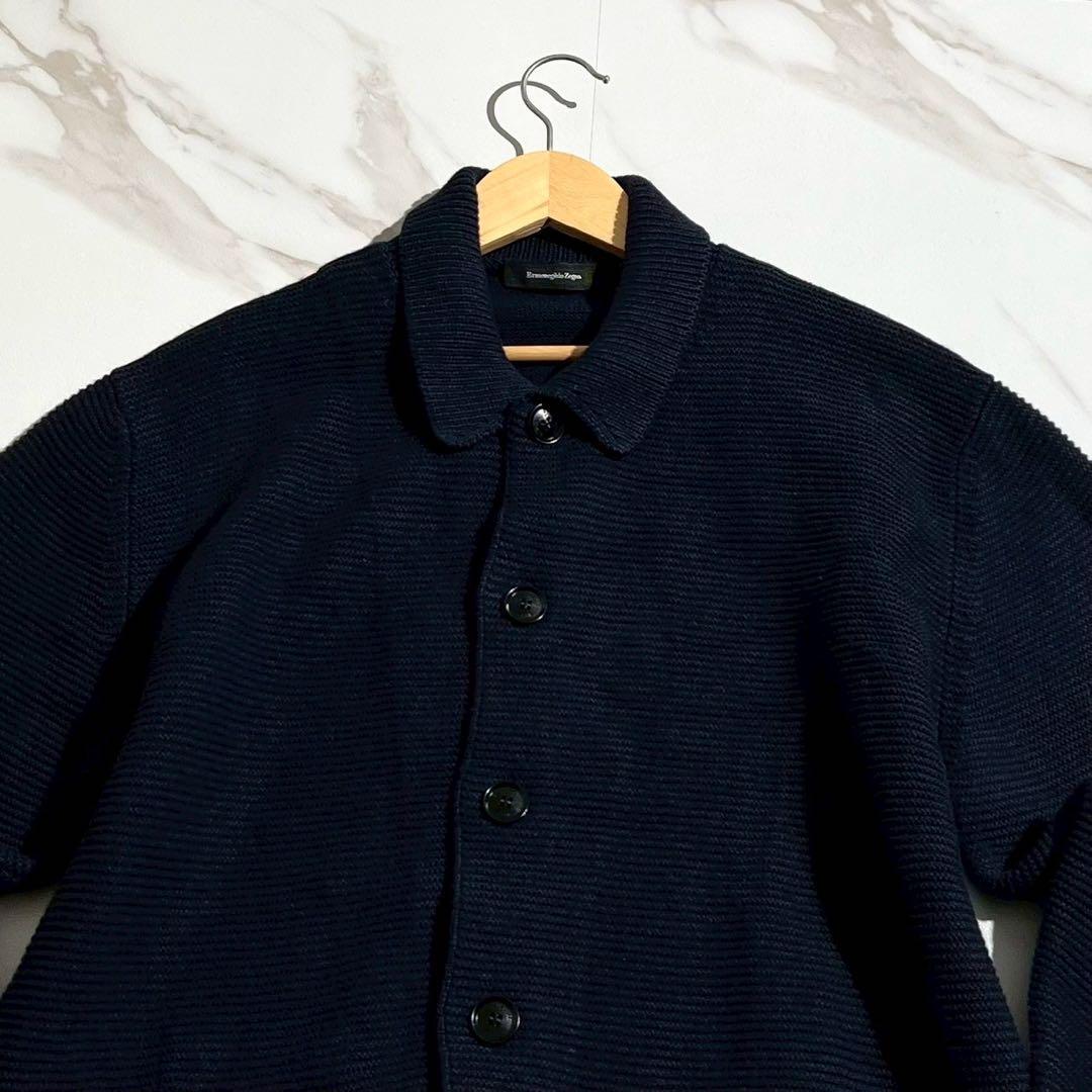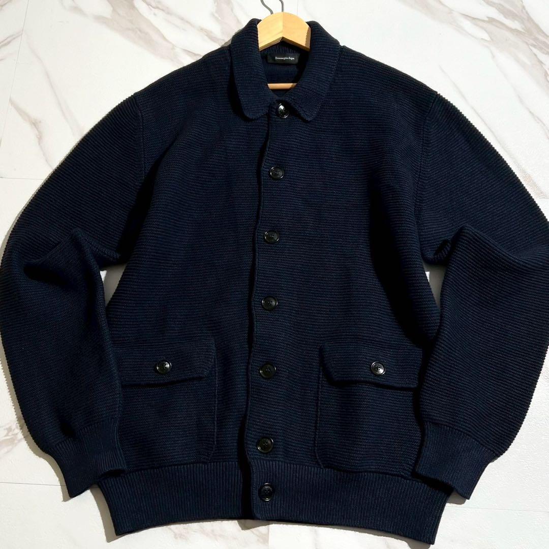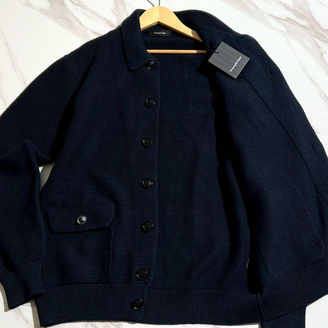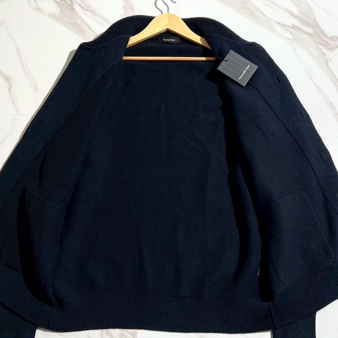 【新品タグ付き/XL/カシミヤ】Ermenegild Zegna エルメネジルドゼニア テーラードジャケット ニット カーディガン ストレッチ ネイビー