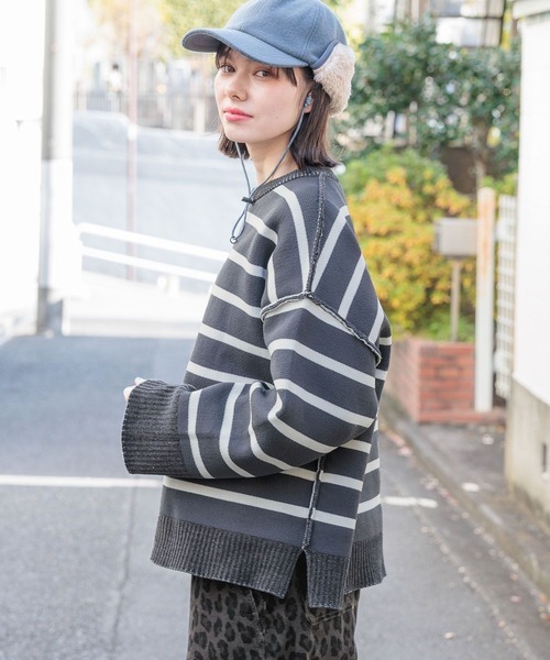 キーワード:ニット セーター レディース クルーネック 長袖 無地 秋 冬