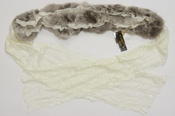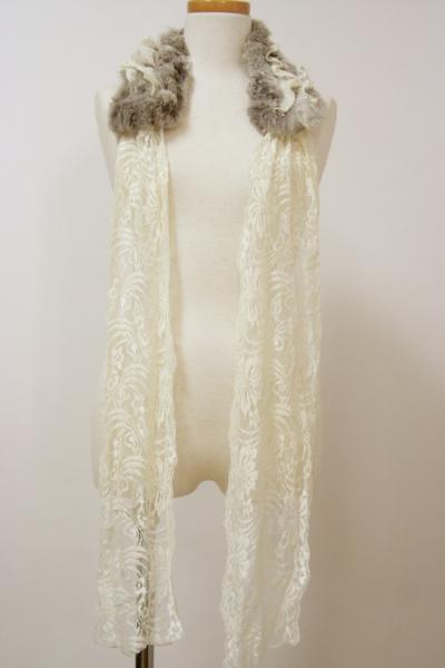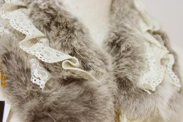 ・約50cmもの長さに渡り天然ラビットを使用した、レース付きのファーマフラーです。