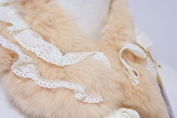 ・ふわふわのラビットファーが首周りをやさしく華やかに包み込んでくれます。