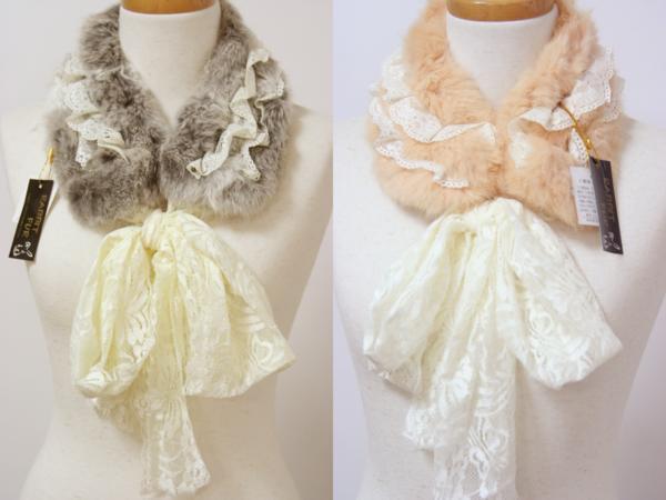 送料無料2色組◆レース付き◆ラビットマフラー(グレー&ベージュ)