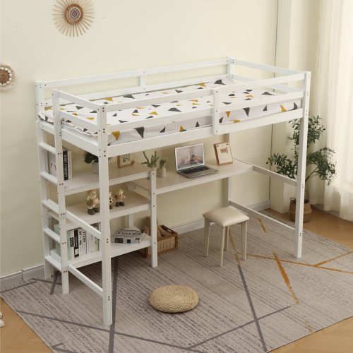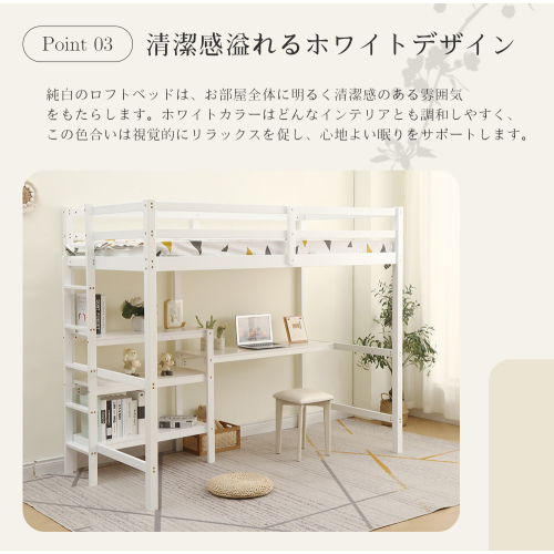 【ホワイト】ロフトベッド 木製 デスク付く ハシゴ 棚 システムベッド 子供ベッド シングルウッド 階段 収納 北欧風 子供部屋 耐震