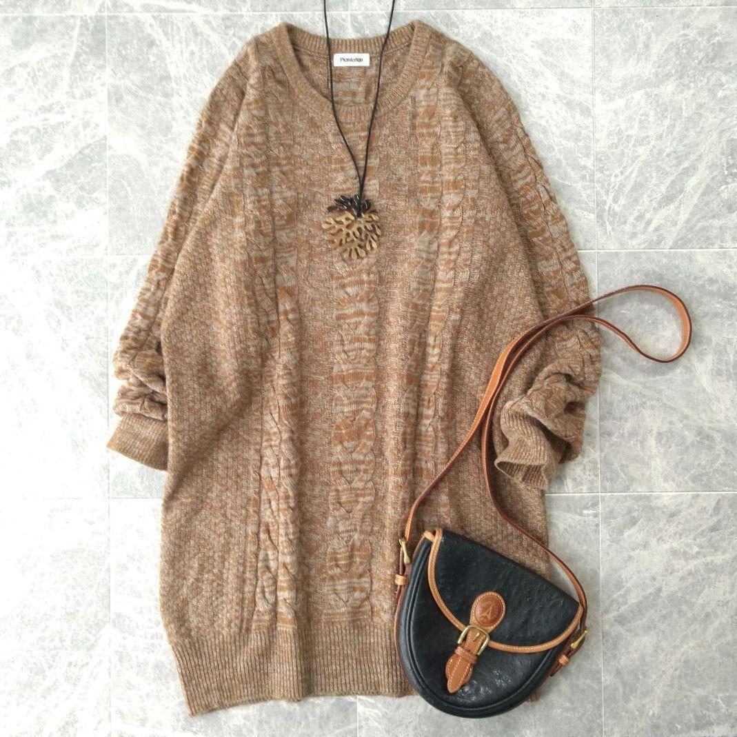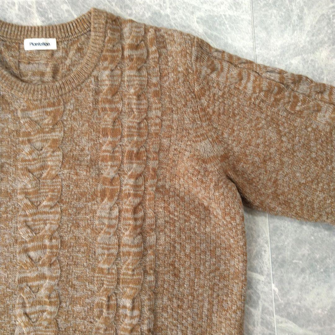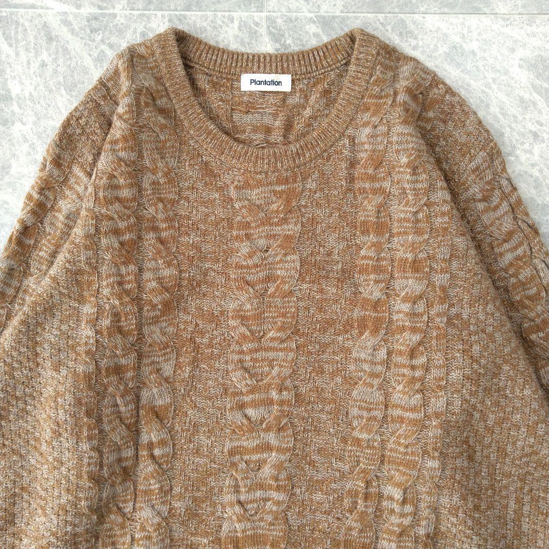 416 プランテーション Plantation ケーブルニット チュニック ワンピース セーター トップス クルーネック レディース ナチュラル系