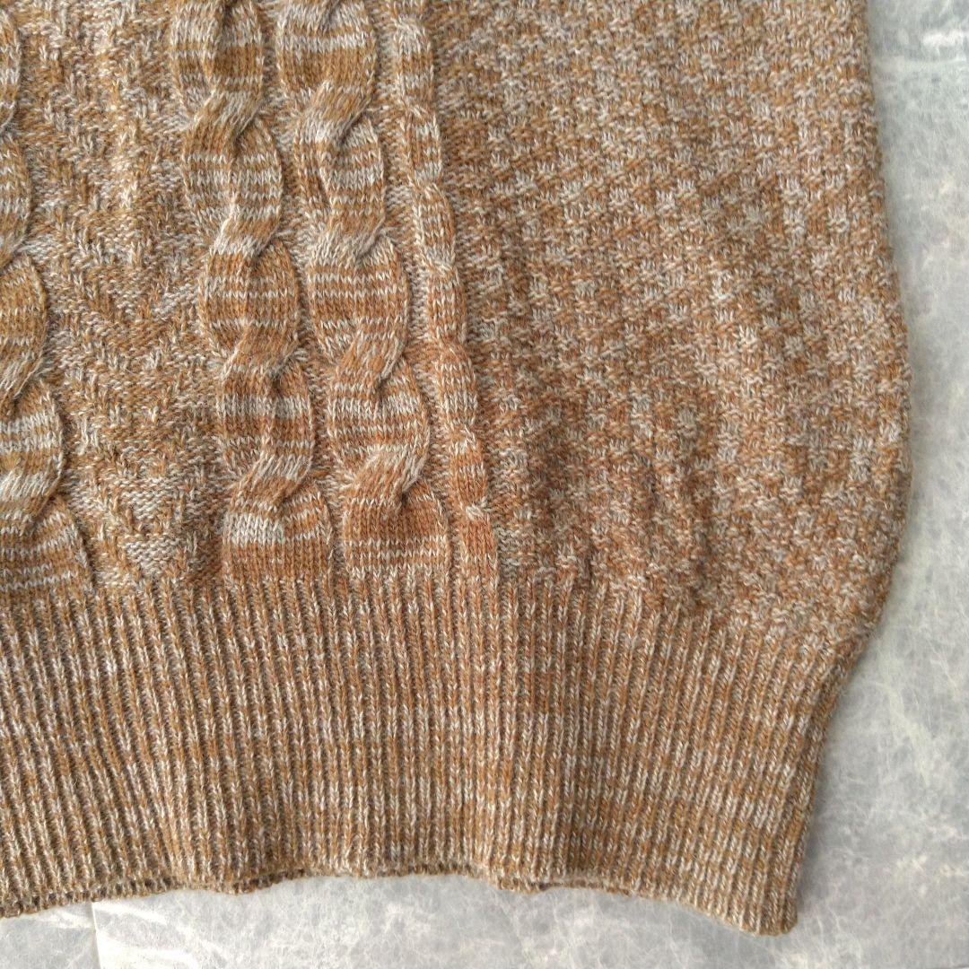 秋口から春先まで使いやすいミドルゲージのケーブルニットです。