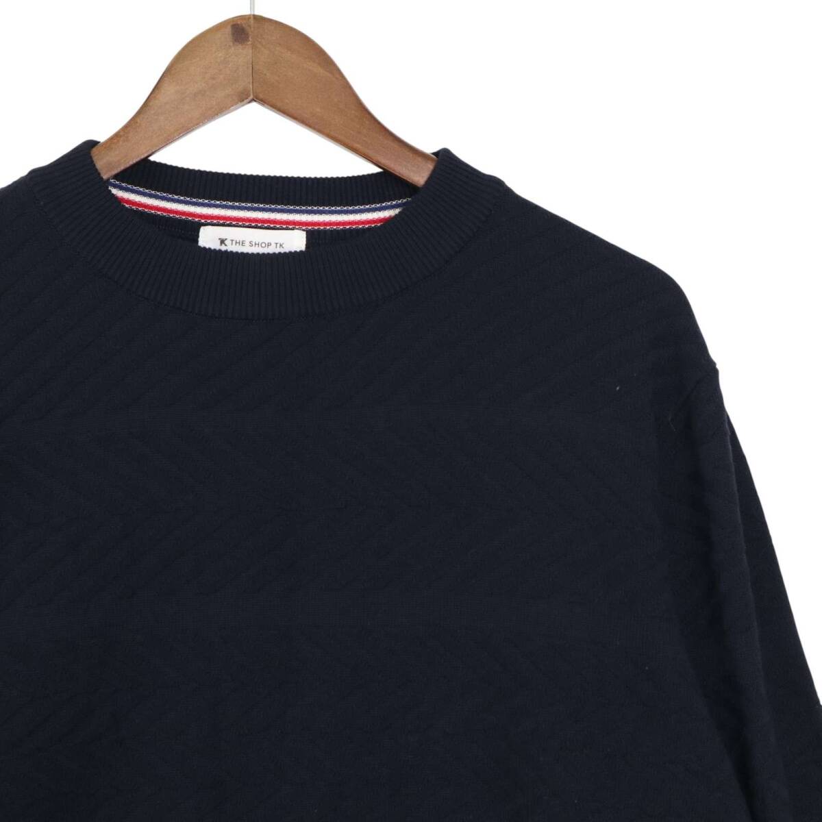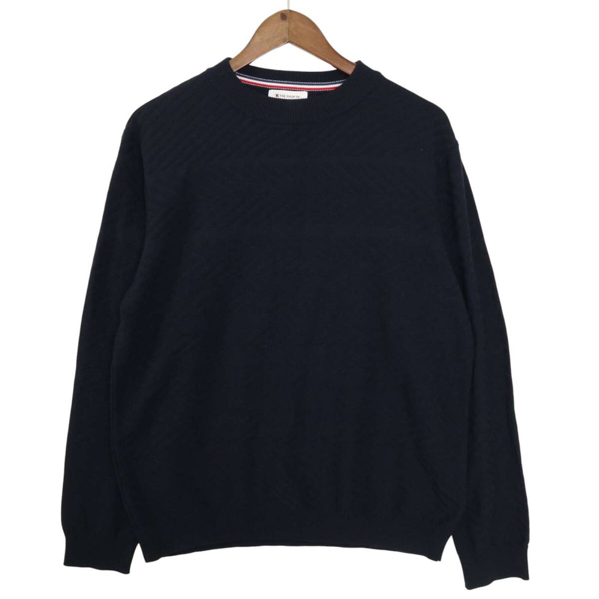 THE SHOP TK タケオキクチ 通年 J∞QUALITY★ デザイン柄 クルーネック ニット セーター Sz.L メンズ 紺 ネイビー 日本製