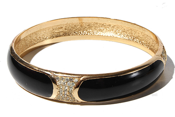 1970's Vintage Dior ヴィンテージ ディオール ラインストーン バングル ブレスレット BLACK GOLD ブラック ゴールド /● レディース